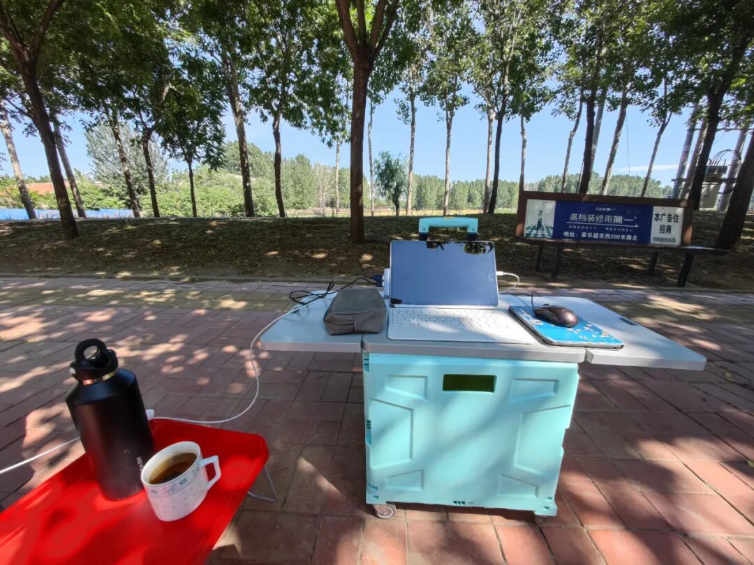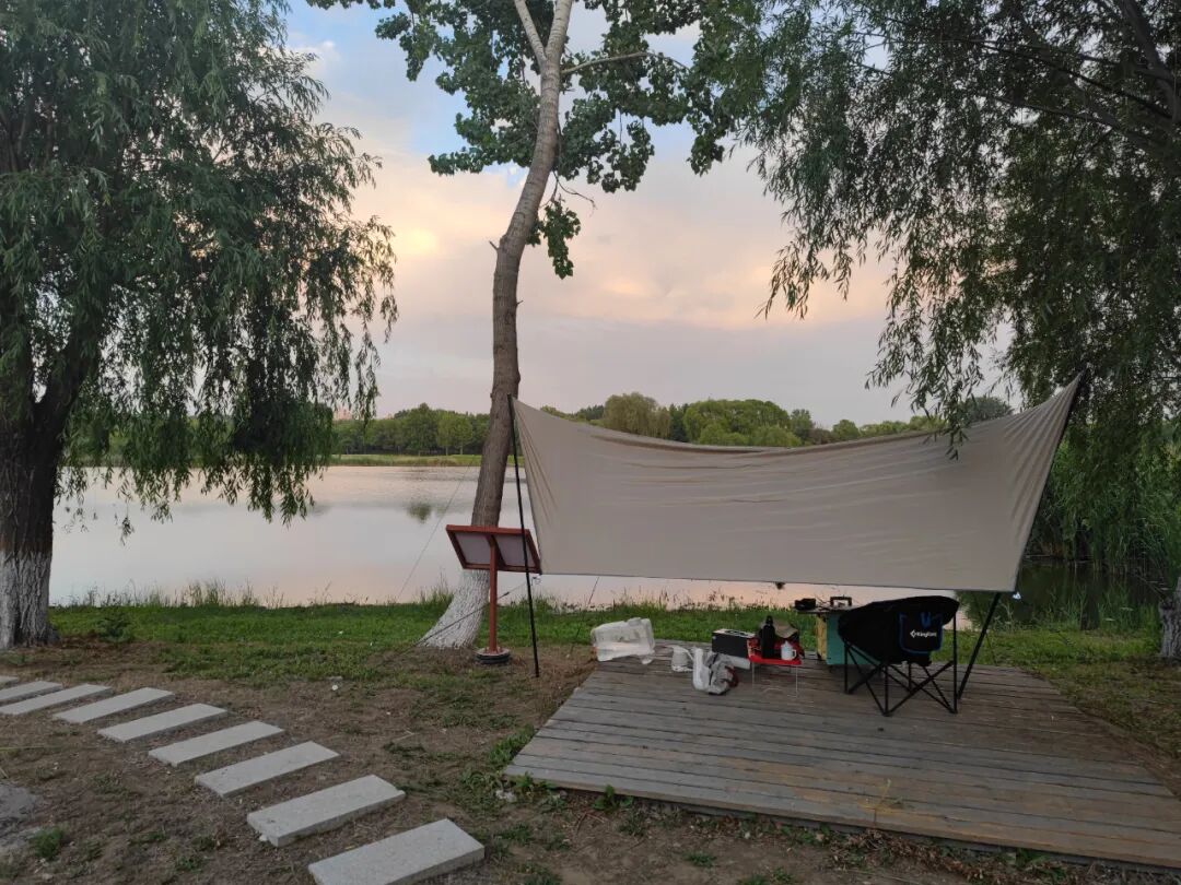 临写完时,突然开始掉点儿,猝不及防的小雨让我手忙脚乱,我怕雨浇坏了电器,可我又来不及把这么多东西搬回去。没办法,我赶紧去车里拿来了我的天幕。