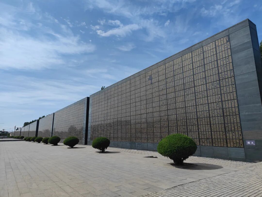 甬道的一侧是遇难者的名单,一面墙有横24、竖13个名字方块,一个方块是5*8共40个人名,一面墙是12,480人。这样的墙有12面,正反都有名字。