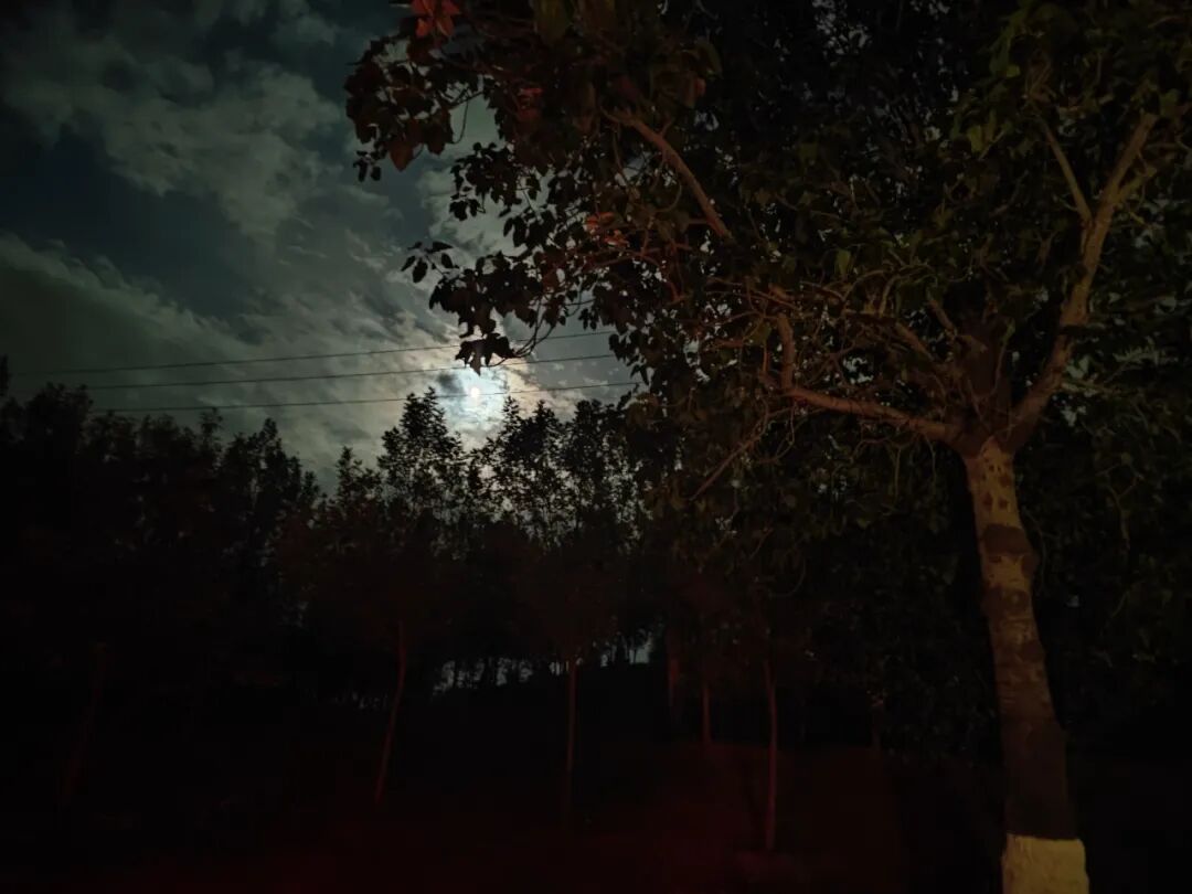 坐着坐着,夜幕降临,月亮出来了。