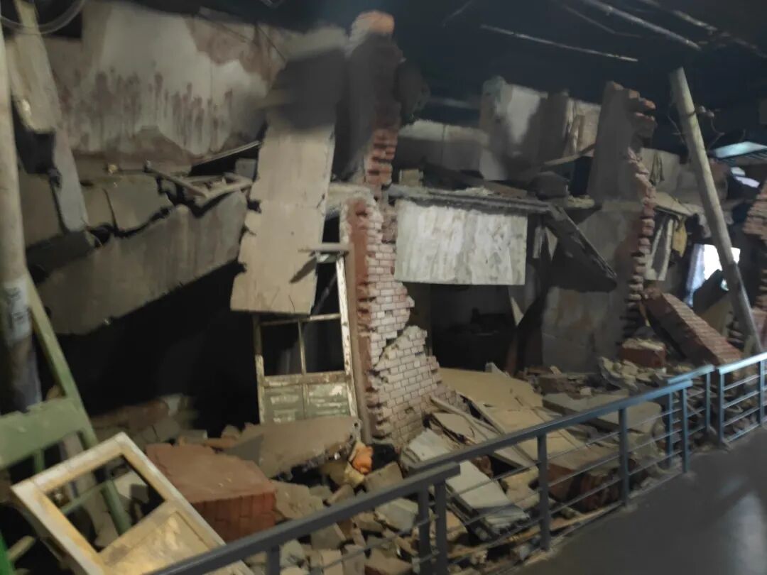 照片看到基本成为了一片废墟,民用建筑94.6%倒塌损坏。