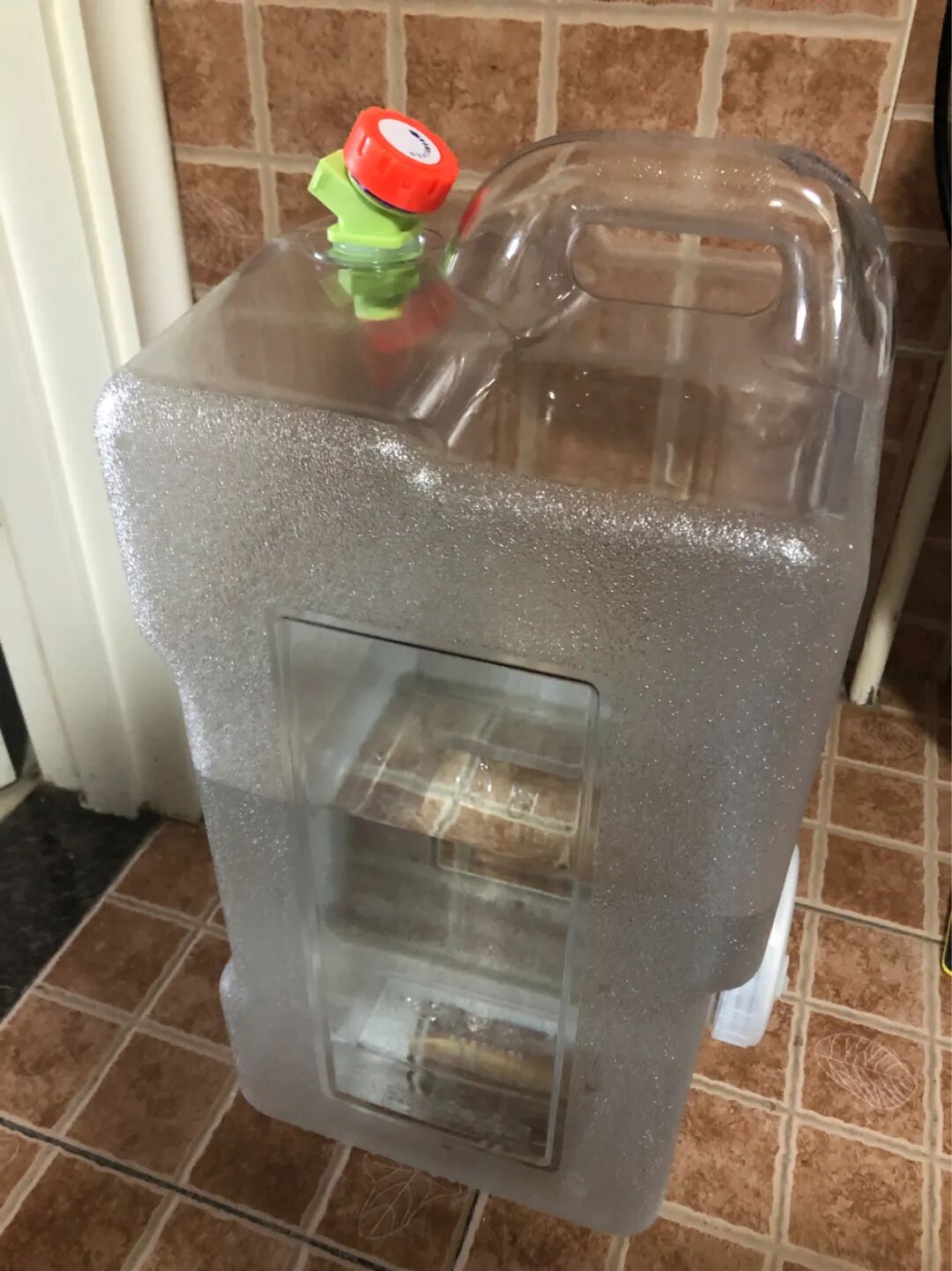 把25L的水箱灌满了水,一桶水应该可以够我喝、洗漱好久的。