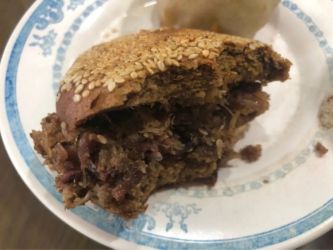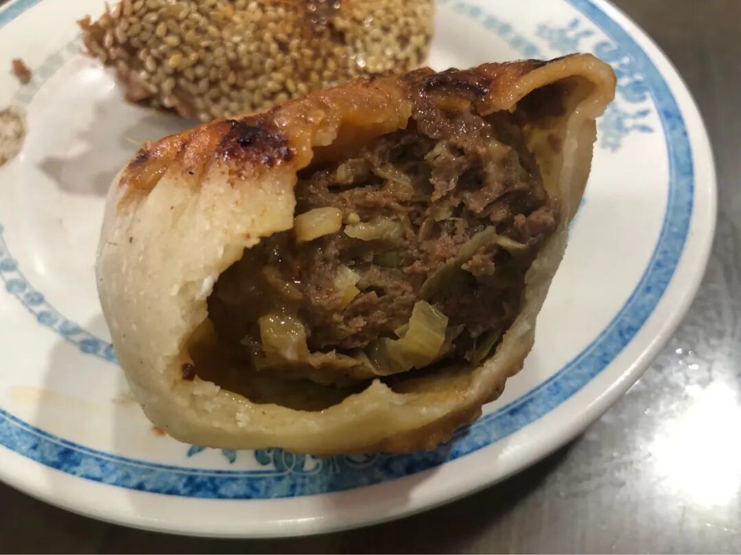 主食一个烧饼夹烧牛羊肉。