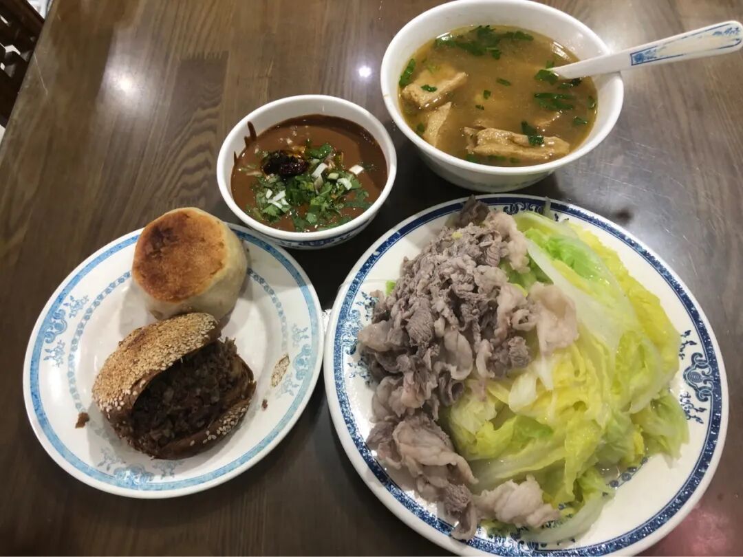 我看隔壁的桌,不少是跟我一样的独自一人,点的最多的是,一盘爆肚、一碗白菜粉丝、一个烧饼夹肉、一碗豆泡汤。我们谁也不看谁,自顾自地闷头吃,仿佛对一切其他毫无兴趣。