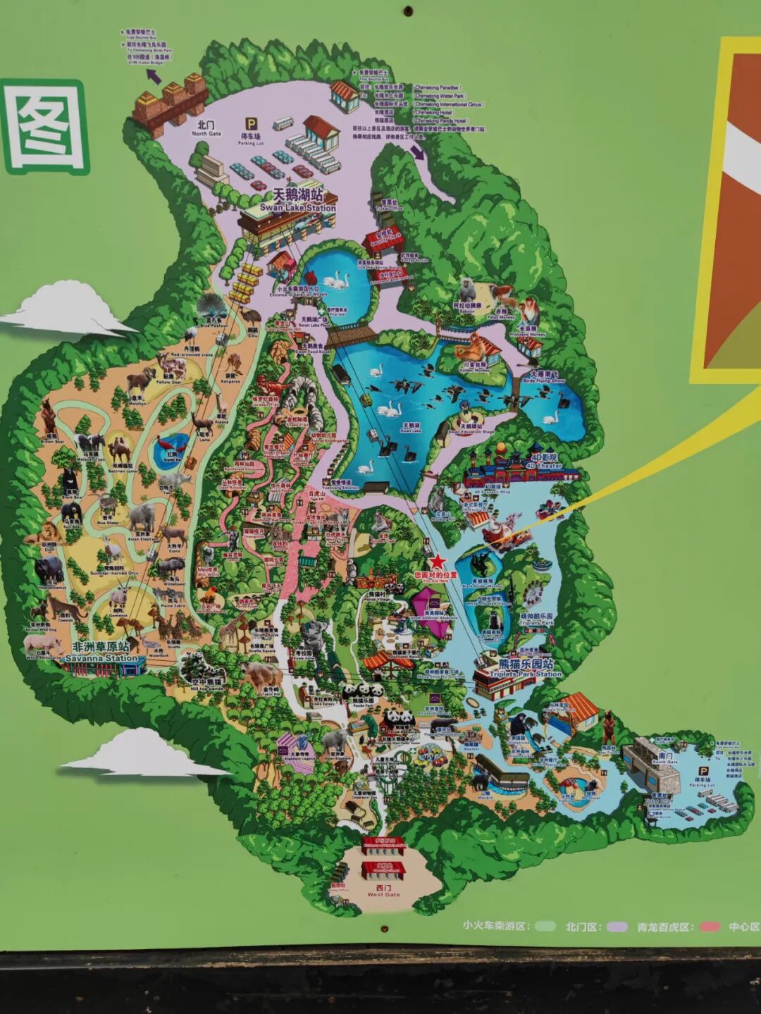 2、坐完小火车,逛步行区,按侏罗纪森林——雨林仙踪——金蛇秘境——百虎山——长颈鹿广场——考拉园——象园——熊猫乐园的顺序,不走回头路。这是很大一片区域,全程走完估计要3个小时,中途有餐厅和排档可以用餐。