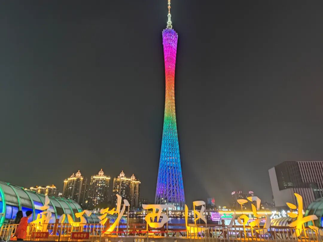 夜游珠江的码头就在小蛮腰下面,很多船,带着你在小蛮腰附近的河上转一圈,一小时。有点像天津海河的游船,但有小蛮腰的加持,还是值得一试的。