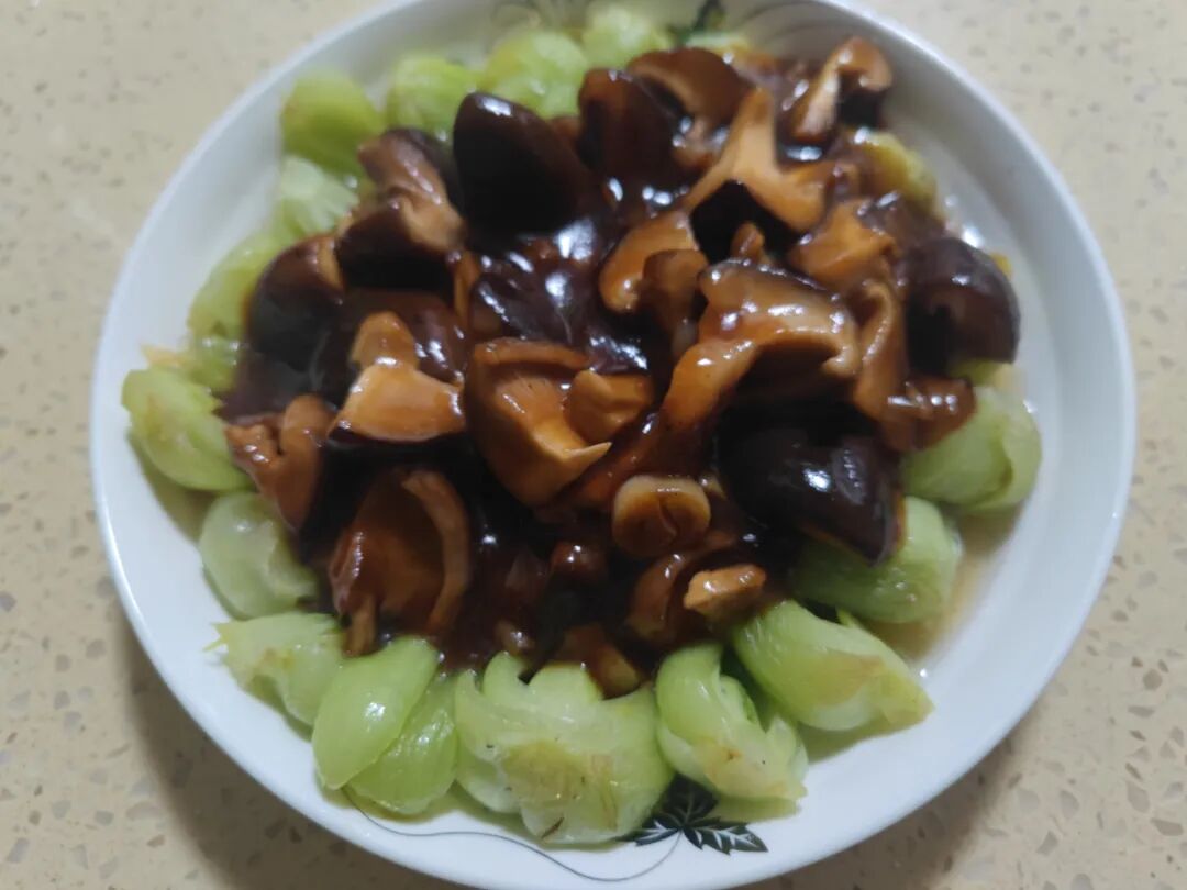 天天吃羊肉有点上火,还炒了个青菜,香菇油菜。