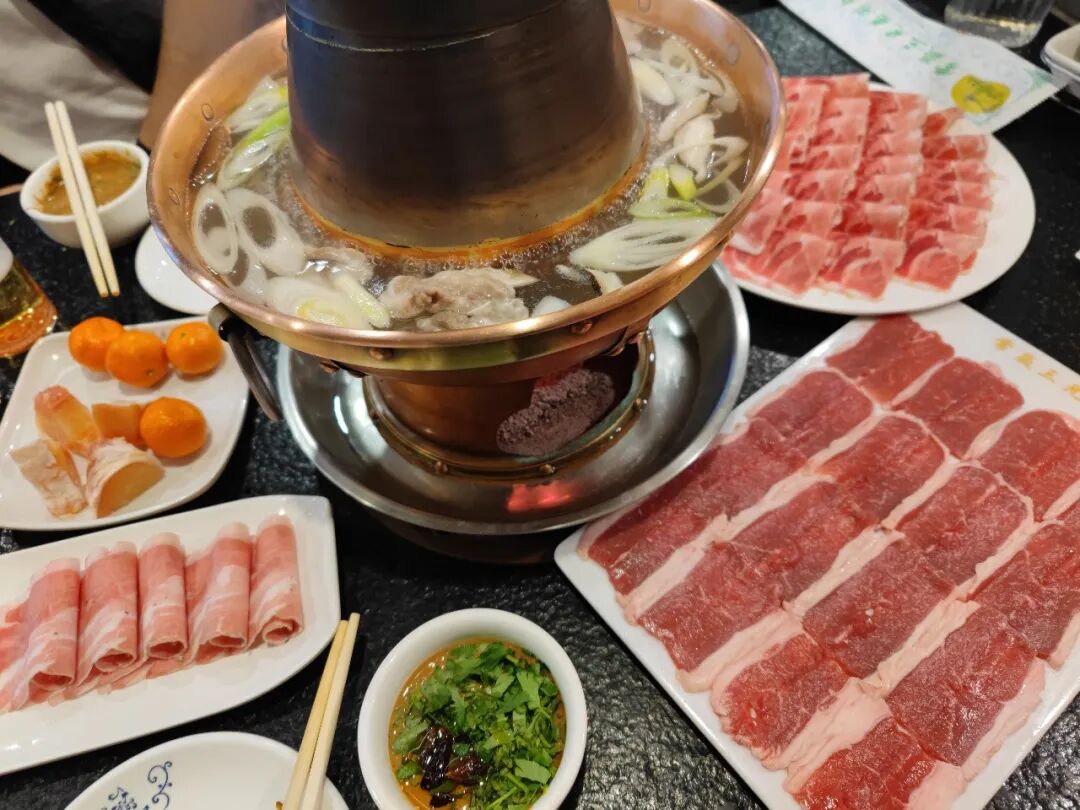 在阴雨天的上海,能吃到一顿还算地道的铜锅炭火涮肉,弥足珍贵。