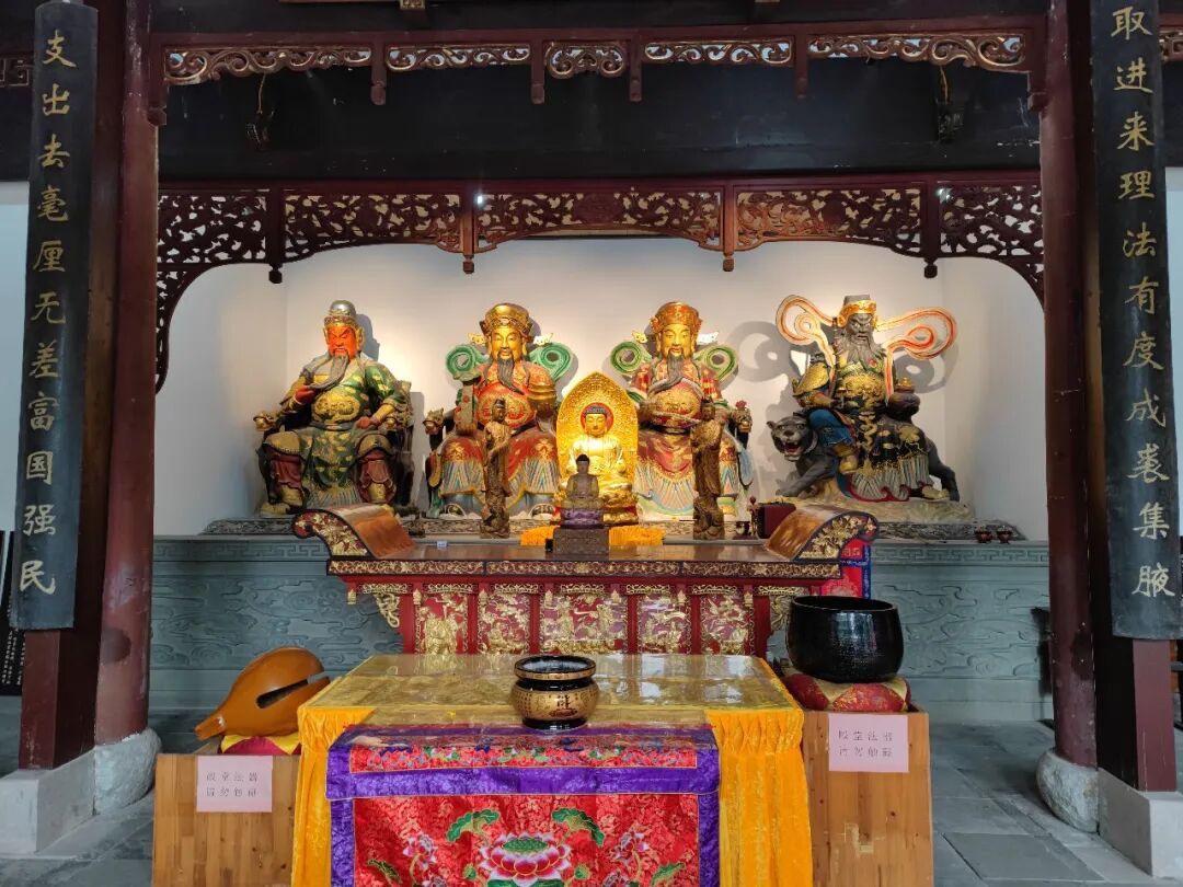 四位财神,从左往右,关公、范蠡、赵公明、比干。关公和比干是武财神,范蠡和赵公明是文财神。