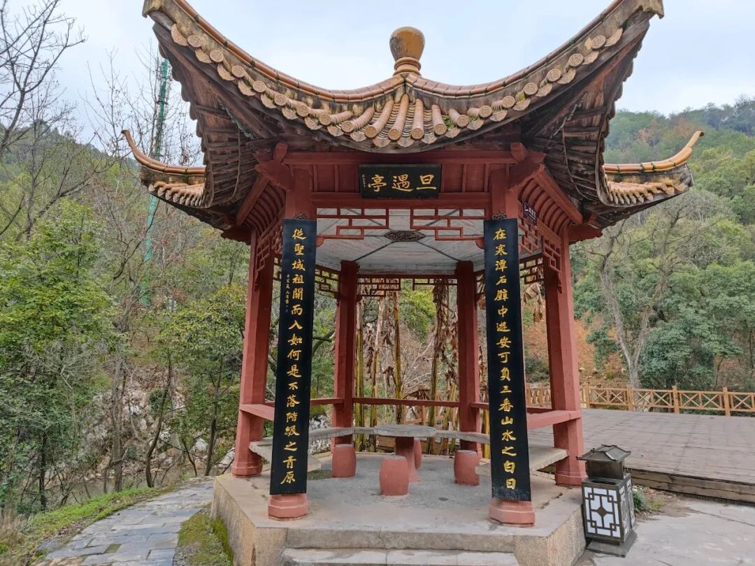 旦遇亭。这里的很多对联都写的很好。