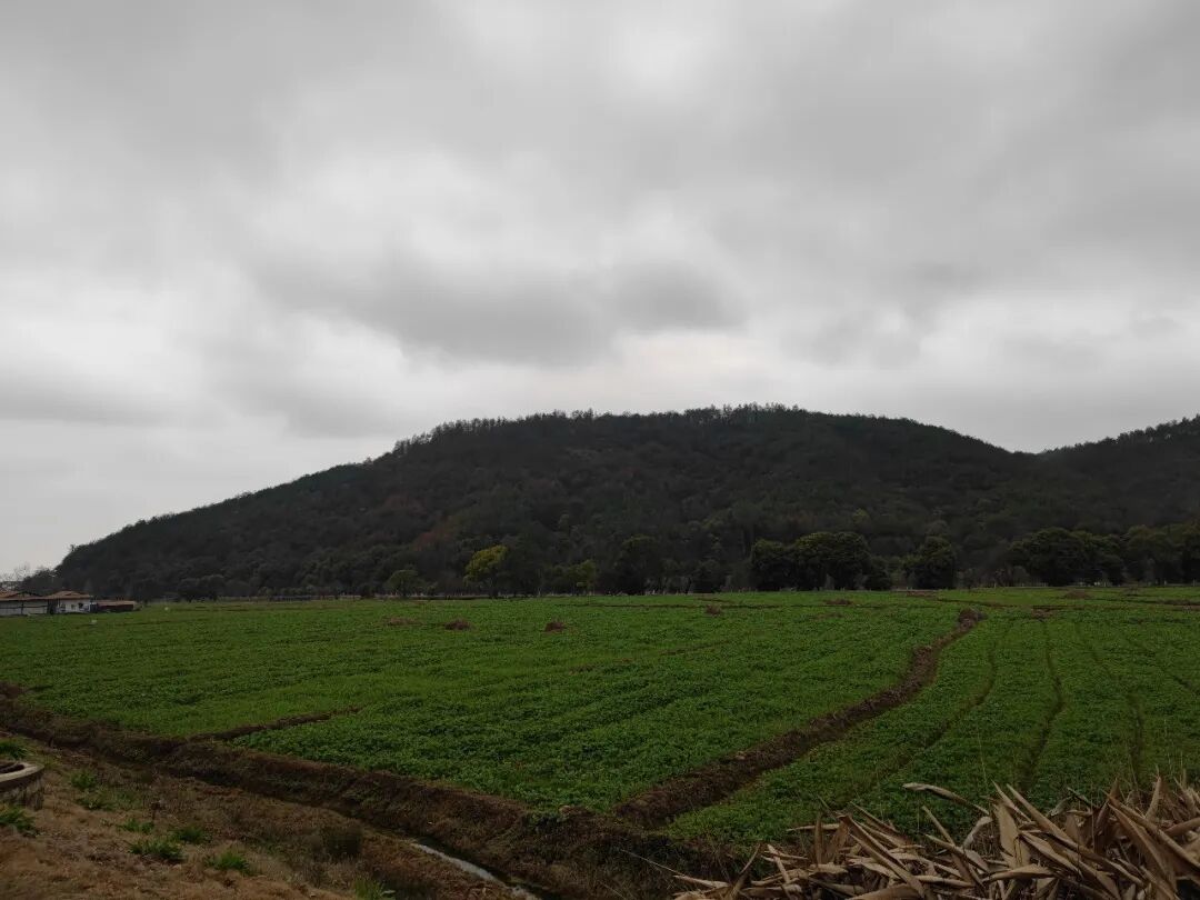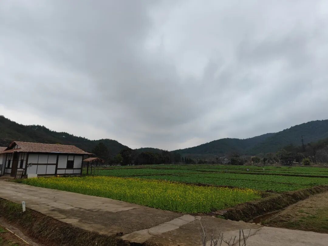 山间一片开阔田园。