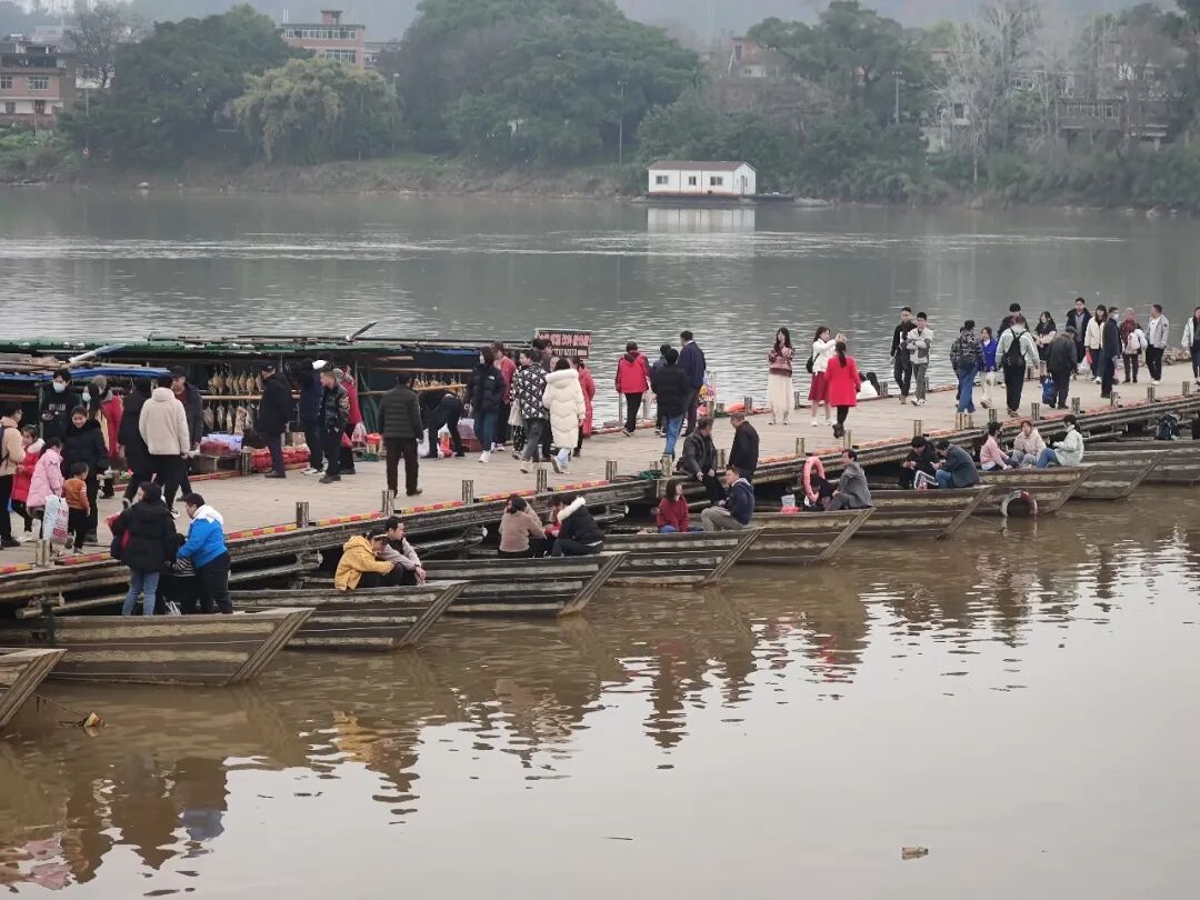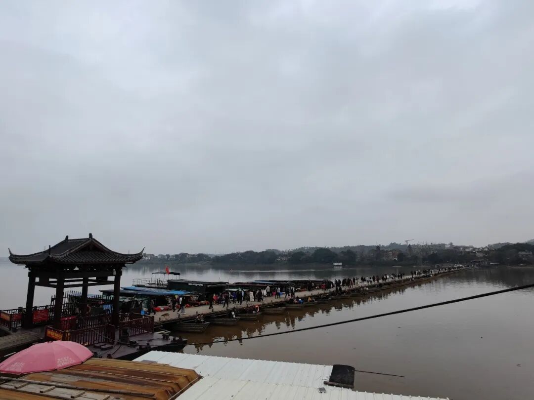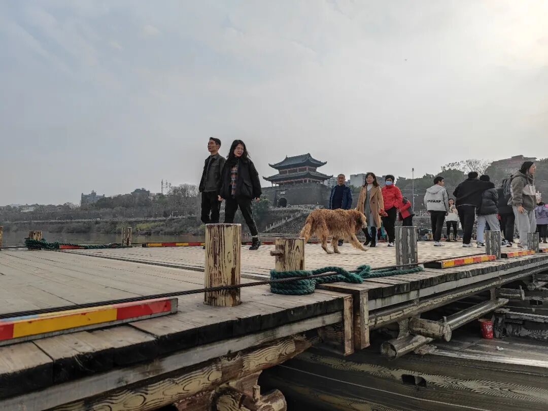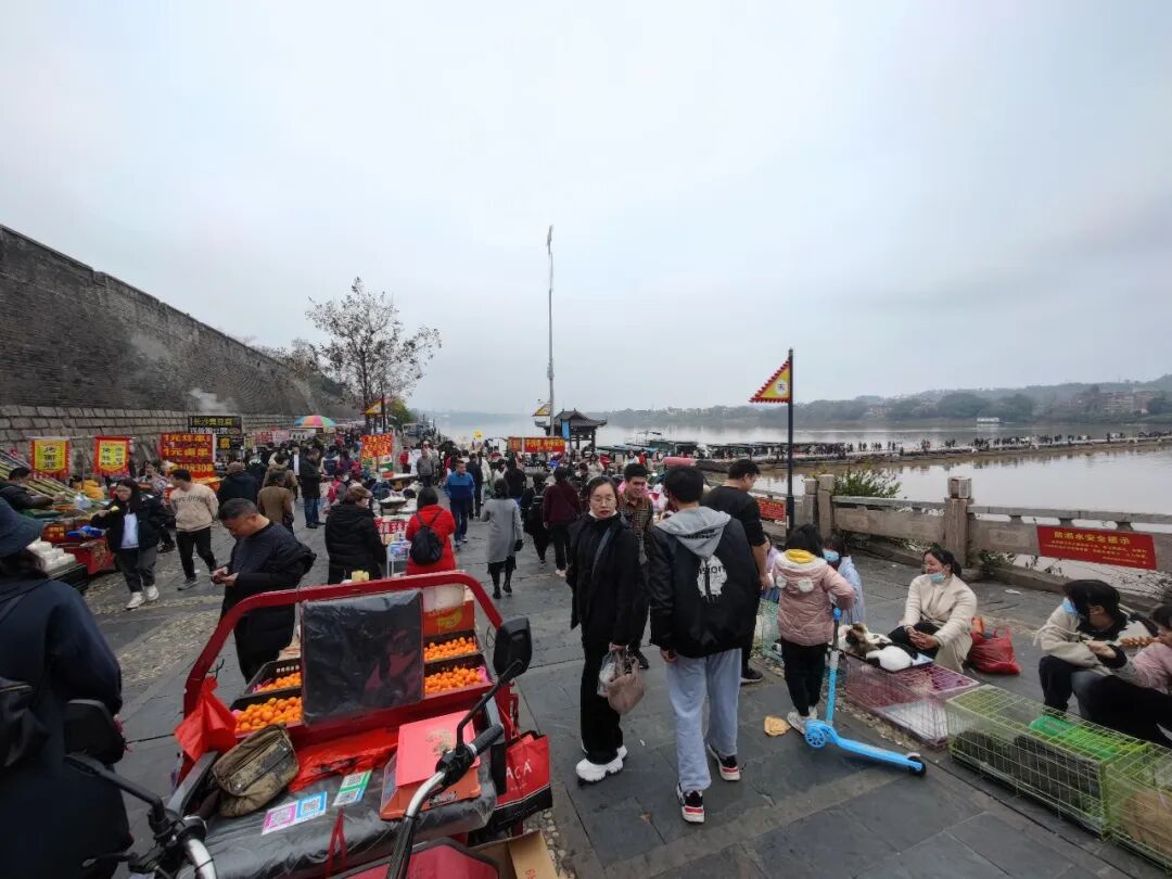 离古寺没多远,就到了宋代浮桥。这里好热闹啊,像个大集,远处江面上是浮桥,这边城墙下是各种摊位。