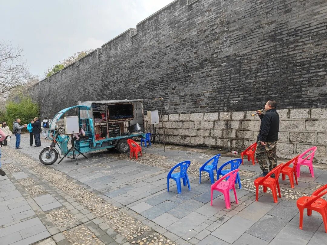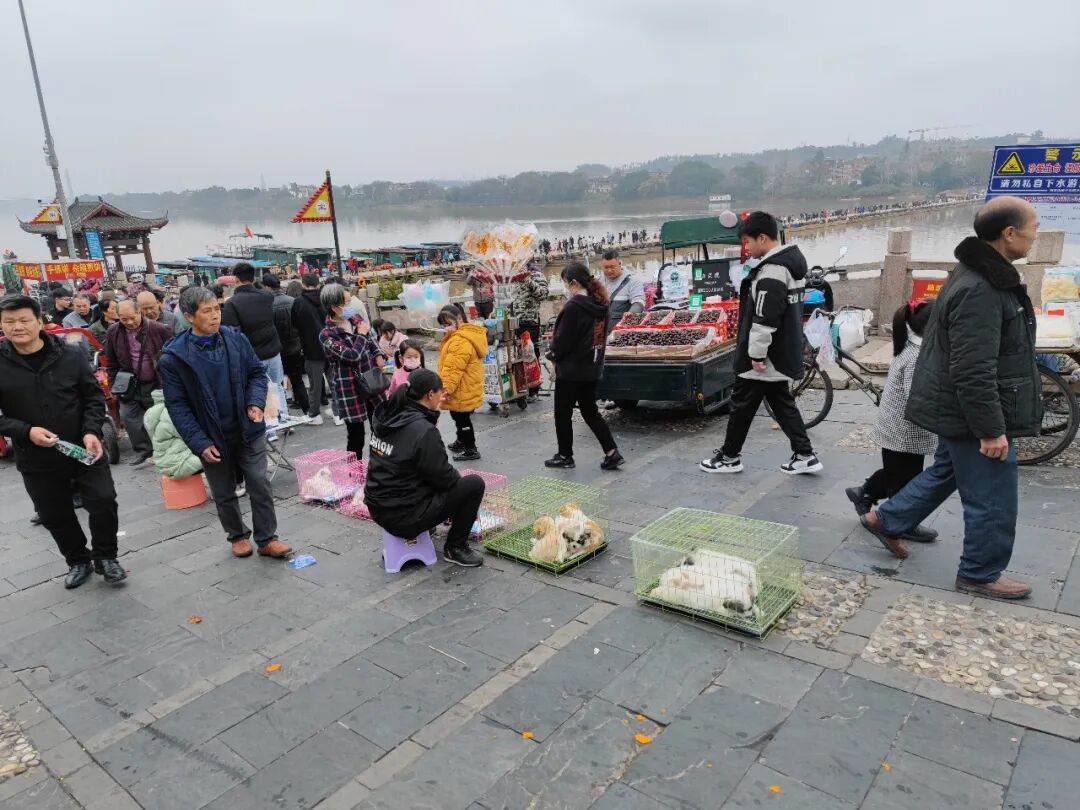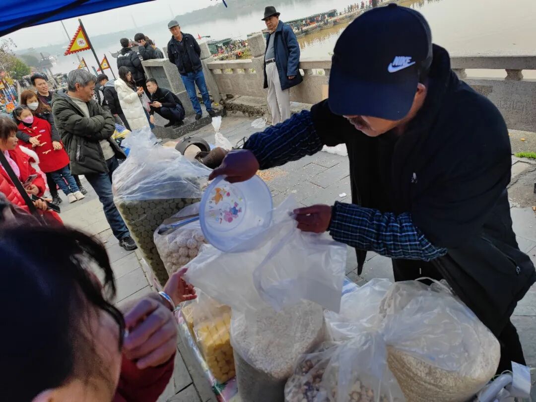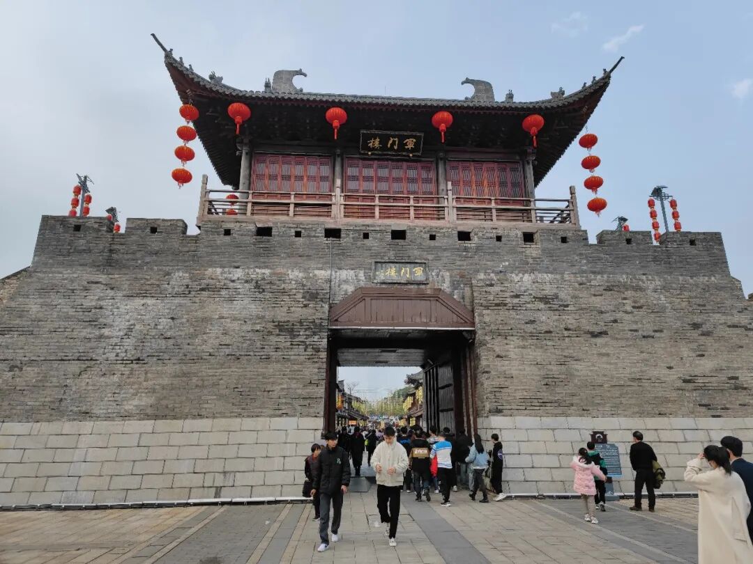 离古寺没多远,就到了宋代浮桥。这里好热闹啊,像个大集,远处江面上是浮桥,这边城墙下是各种摊位。