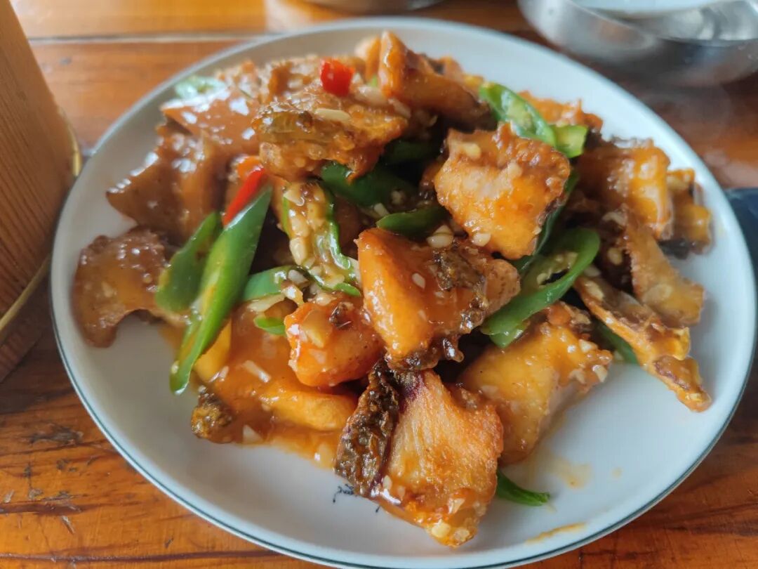 赣南小炒鱼,口感类似焦溜肉段,鱼没有小刺,外焦里嫩,咸香微辣,很好吃。