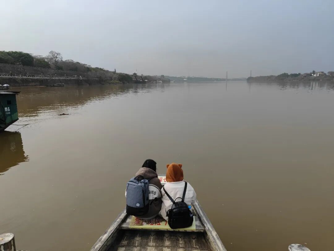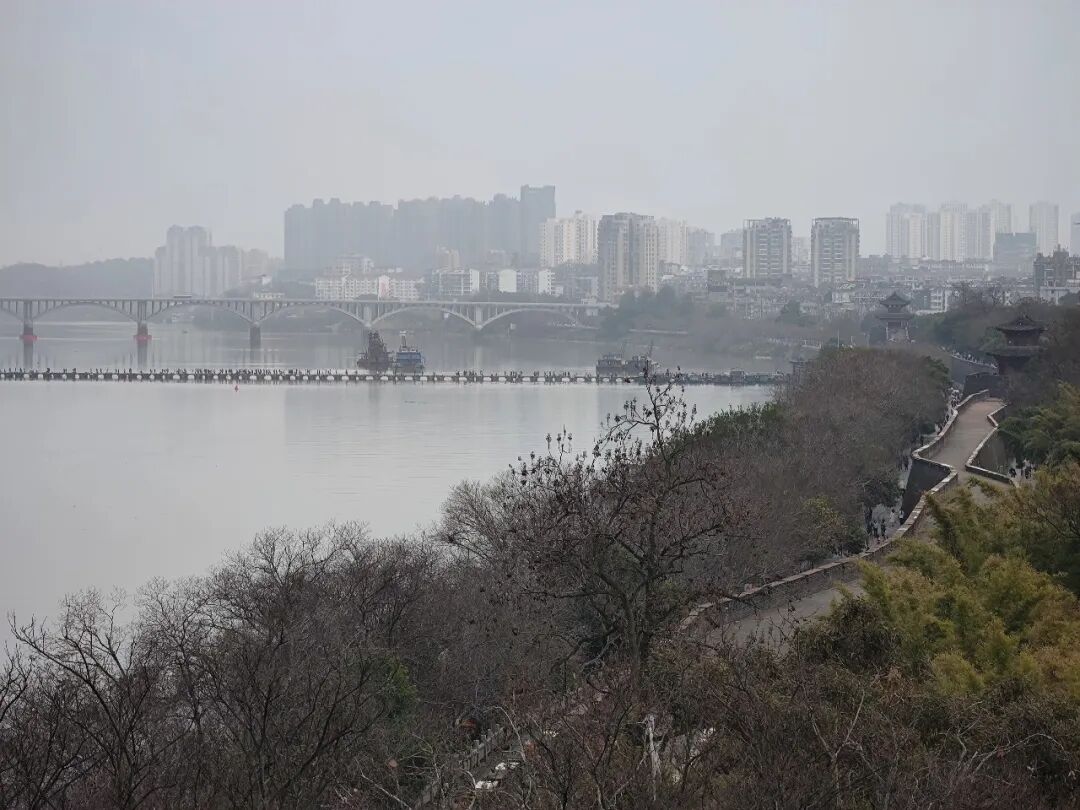 远眺浮桥,桥下面是一艘艘船,船上面架木板,宋代就有这浮桥,古人这样渡江。