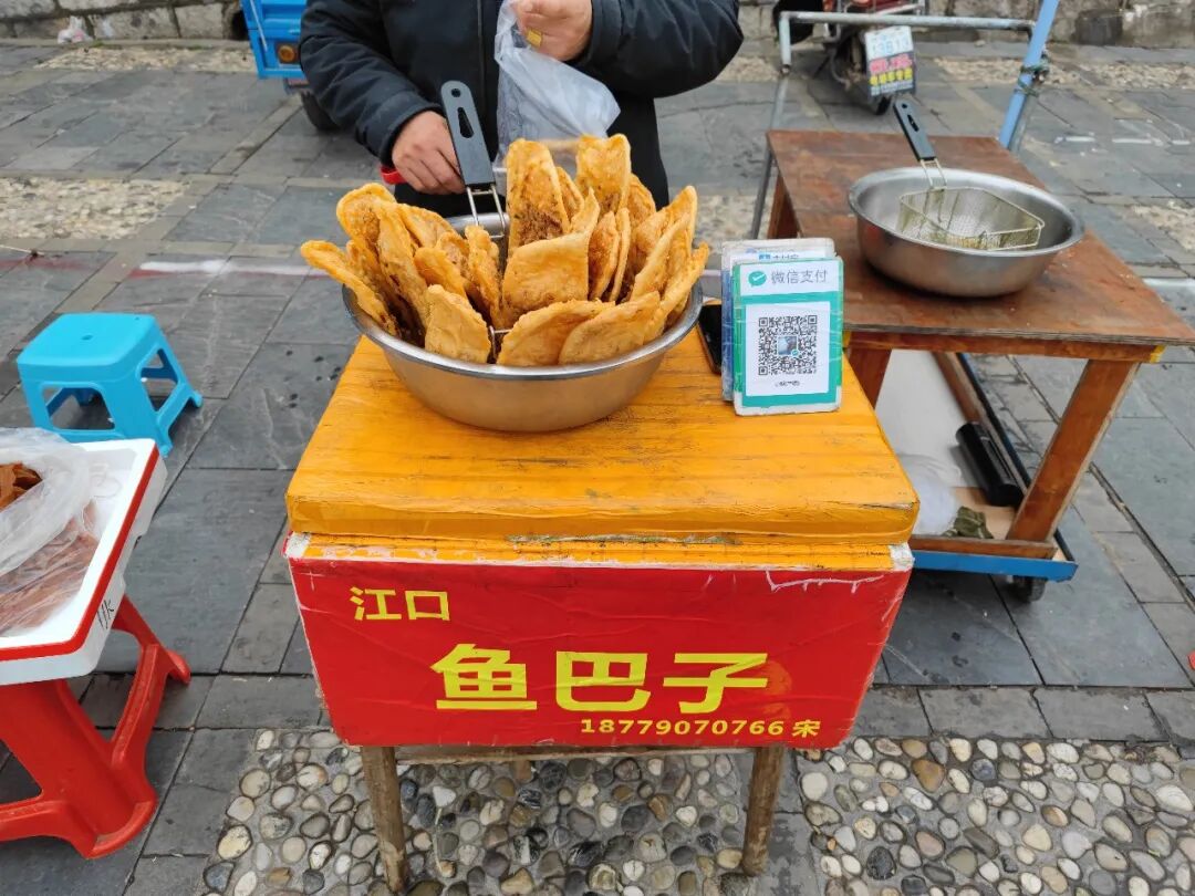 3元一个的鱼巴子,没吃过,也买一个,脆脆的很好吃。
