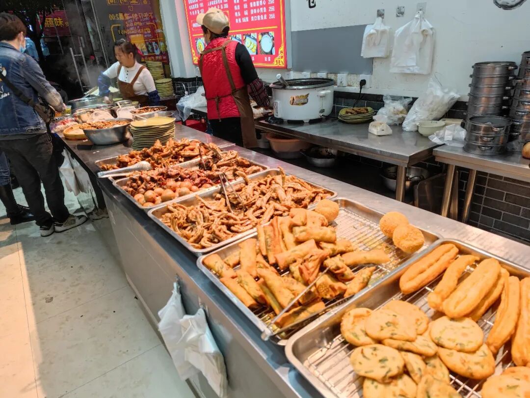 豆浆2元一碗,无限续。猪蹄和鸭头解完馋,我又来了根油条当主食。