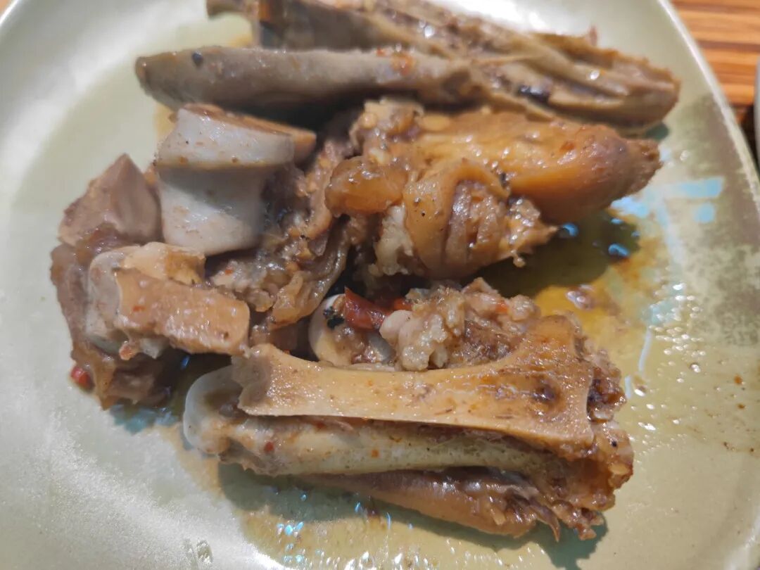 我要了春卷、麻团、米果,一个猪蹄一个鸭头,卤货还给切开后放到卤水里热好上桌,很入味、很好吃。