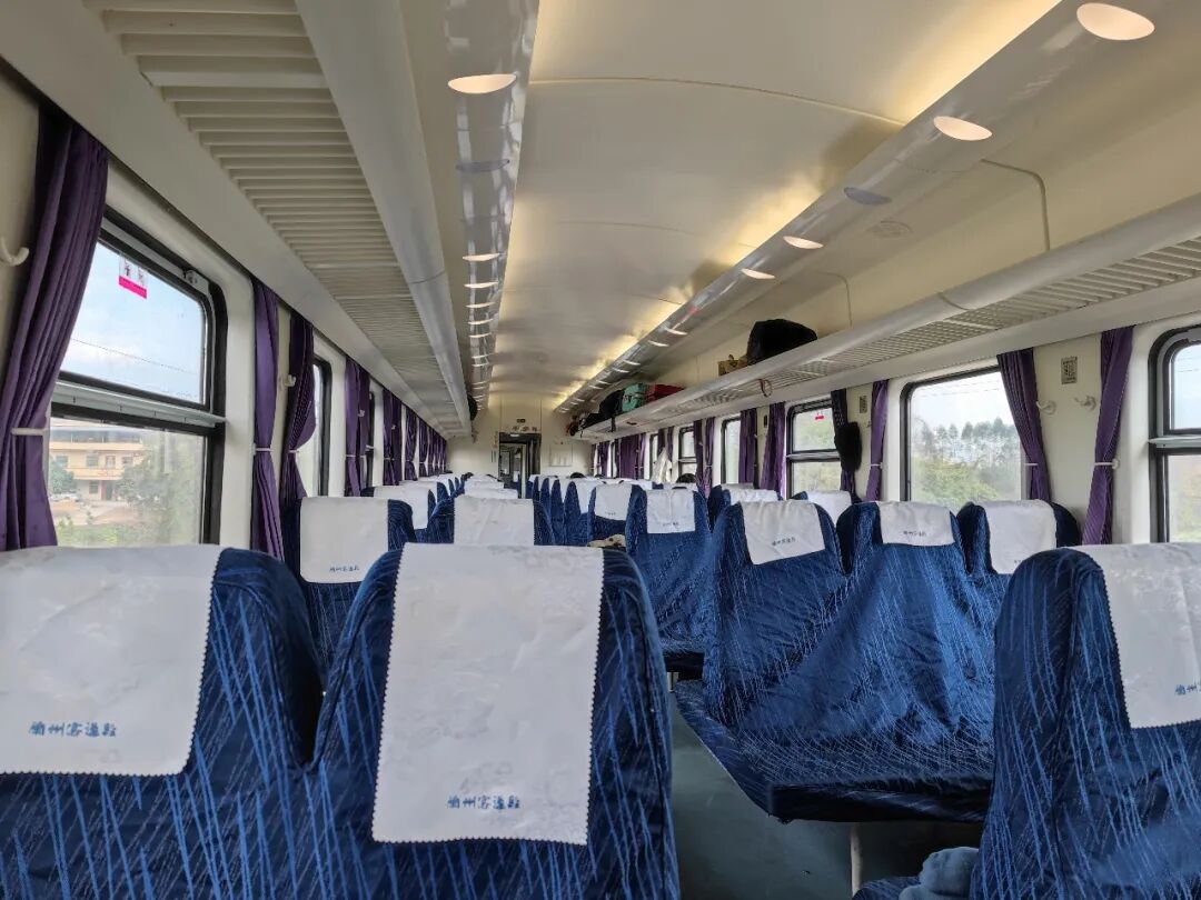 惠州到赣州的绿皮车,人很少,车票只要59元。