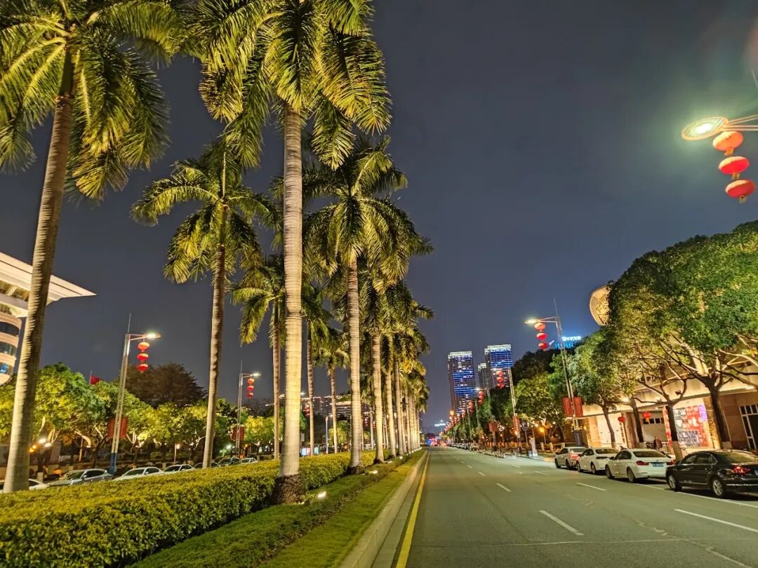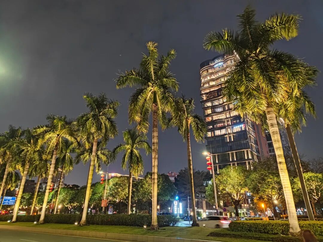 高大笔直的棕榈树立在马路中央。