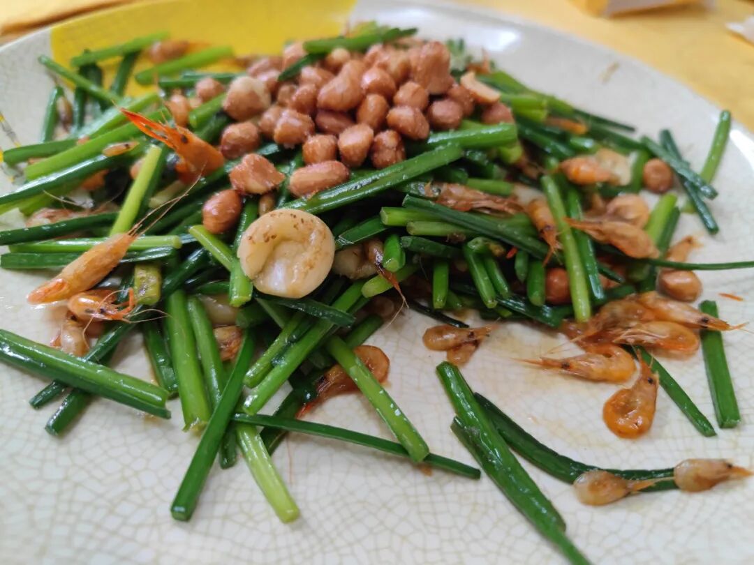 双韭炒河虾,韭菜芯很爽脆,小河虾鲜美,两者搭配在一起,吃起来不停嘴。
