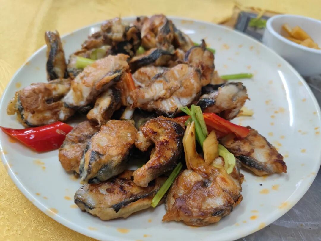 煎焗爽鳝。白鳝(鳗鱼的一种)切段,煎焗做法,肉质肥美细嫩,且有一种劲道的口感,非常好吃。