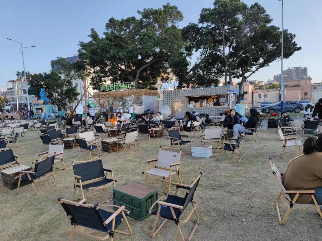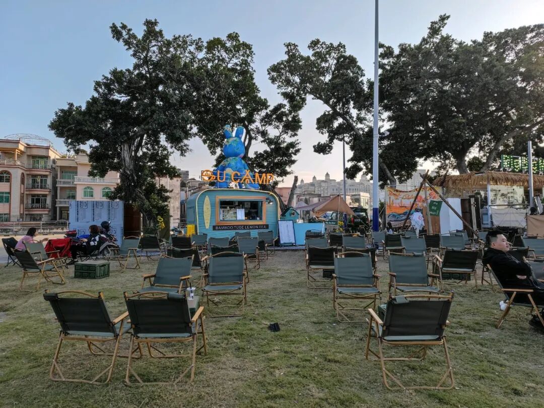 草地上支满了椅子,想歇会儿就坐下点杯喝的。