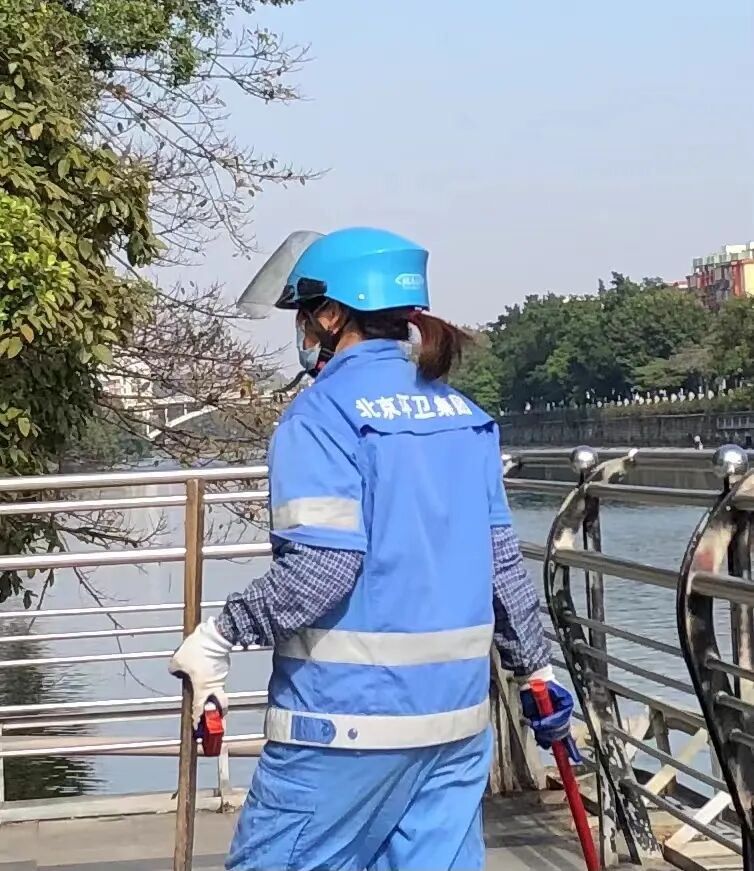 旁边有个大姐在打扫,我揉揉眼睛,没看错,“北京环卫集团”,我是在北京的护城河边儿上么?