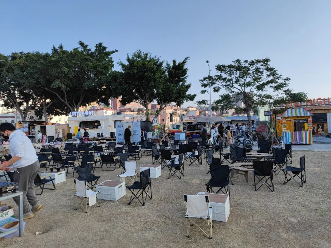 我很羡慕江边的这些摊位,都是年轻人,卖着各种各样的食物饮料。
