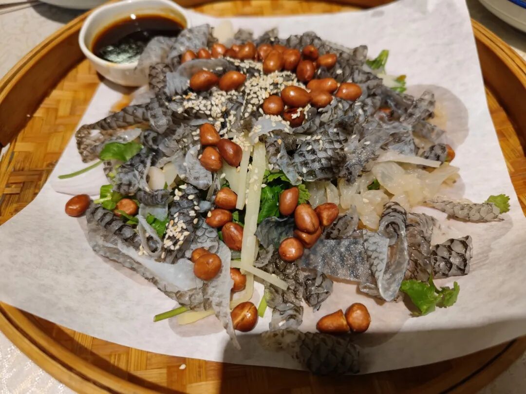 桌桌必点的鱼皮。顺德的鱼生出名,鱼皮也不错。