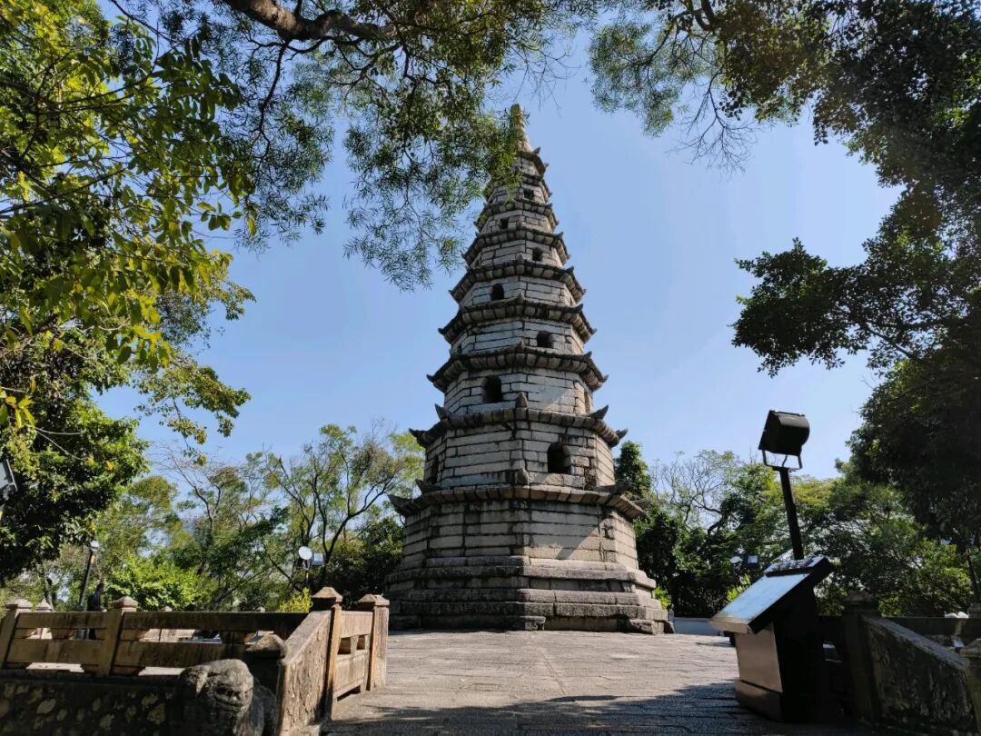 这是一座宋代建的塔,塔顶塌过又翻修了。