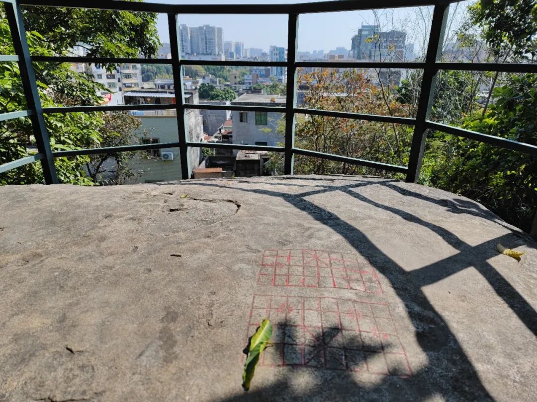 这块高处的平坦石头上,不知道是谁刻了个象棋盘,也不知道当年是什么样的两个人整日在这里对弈。