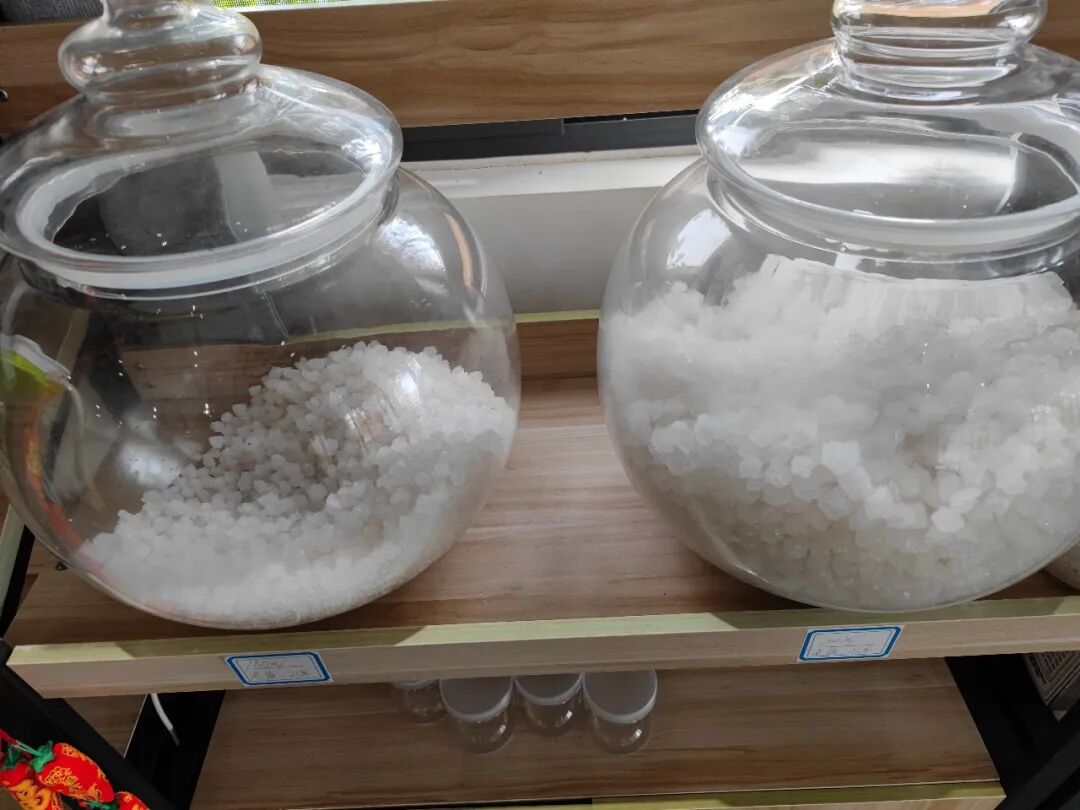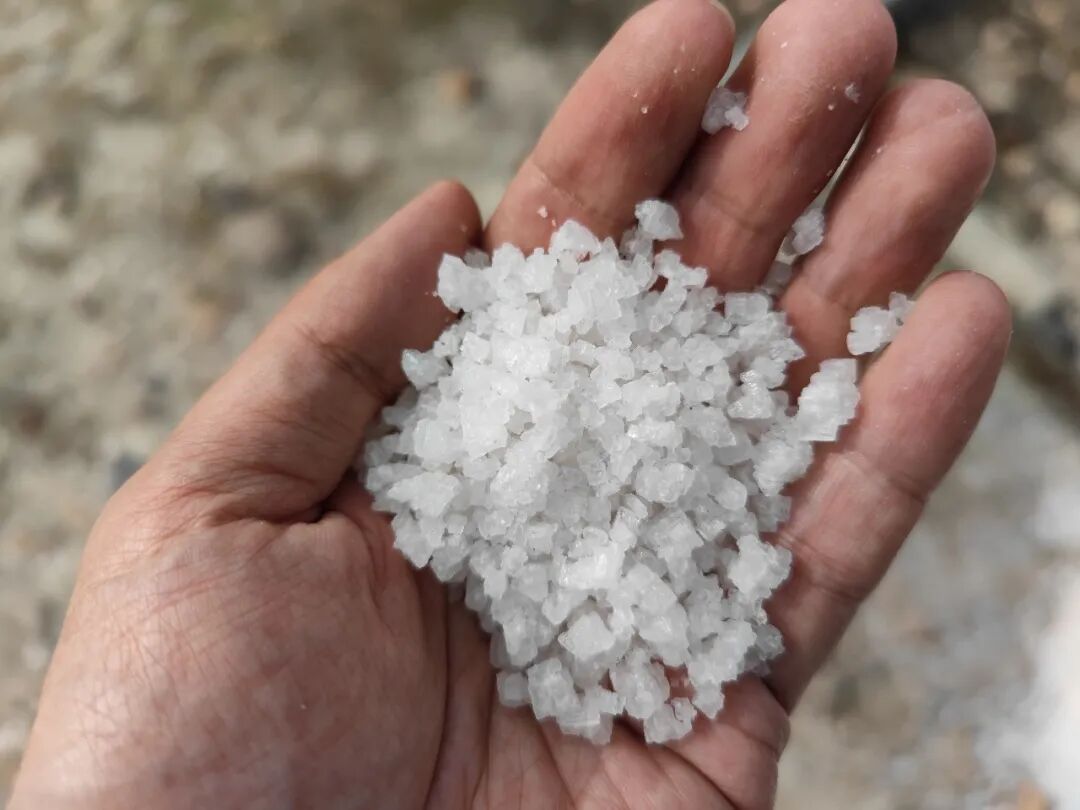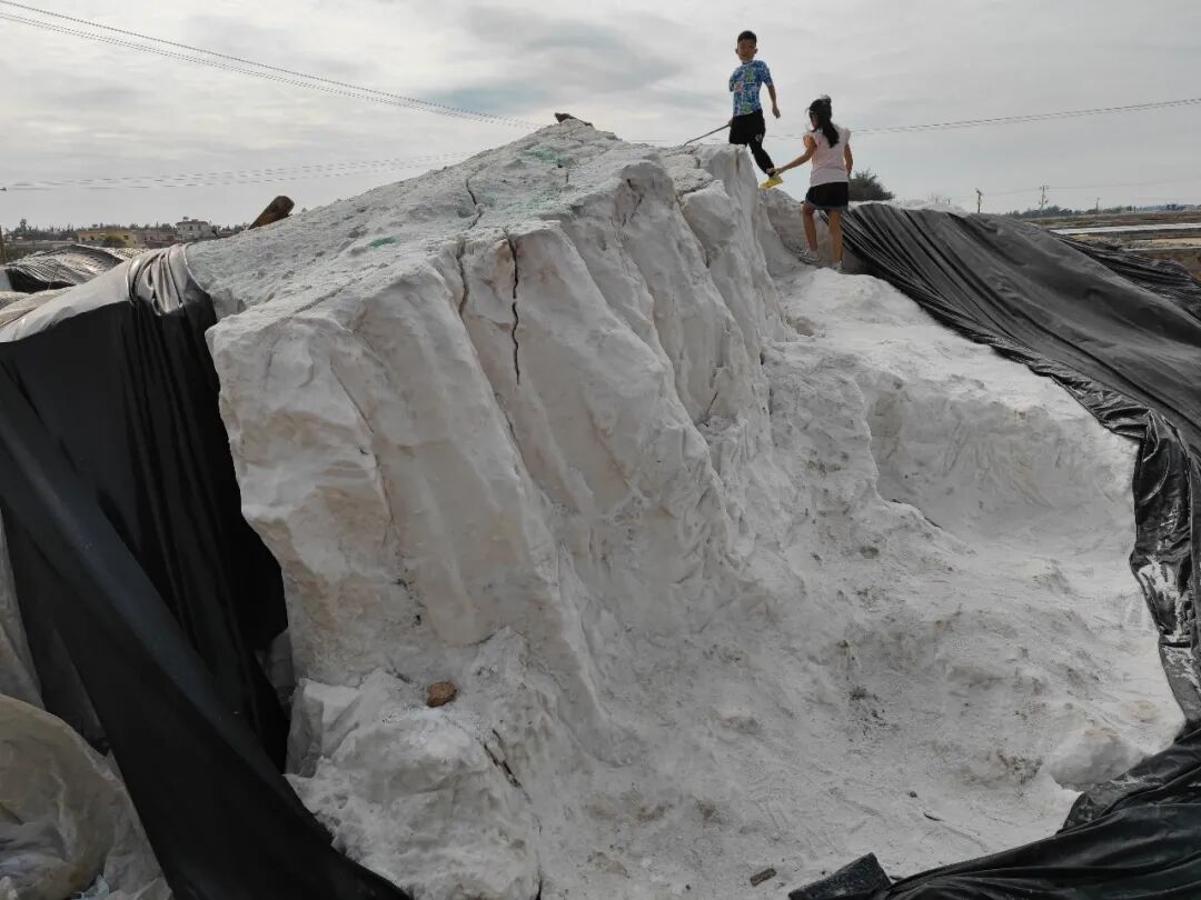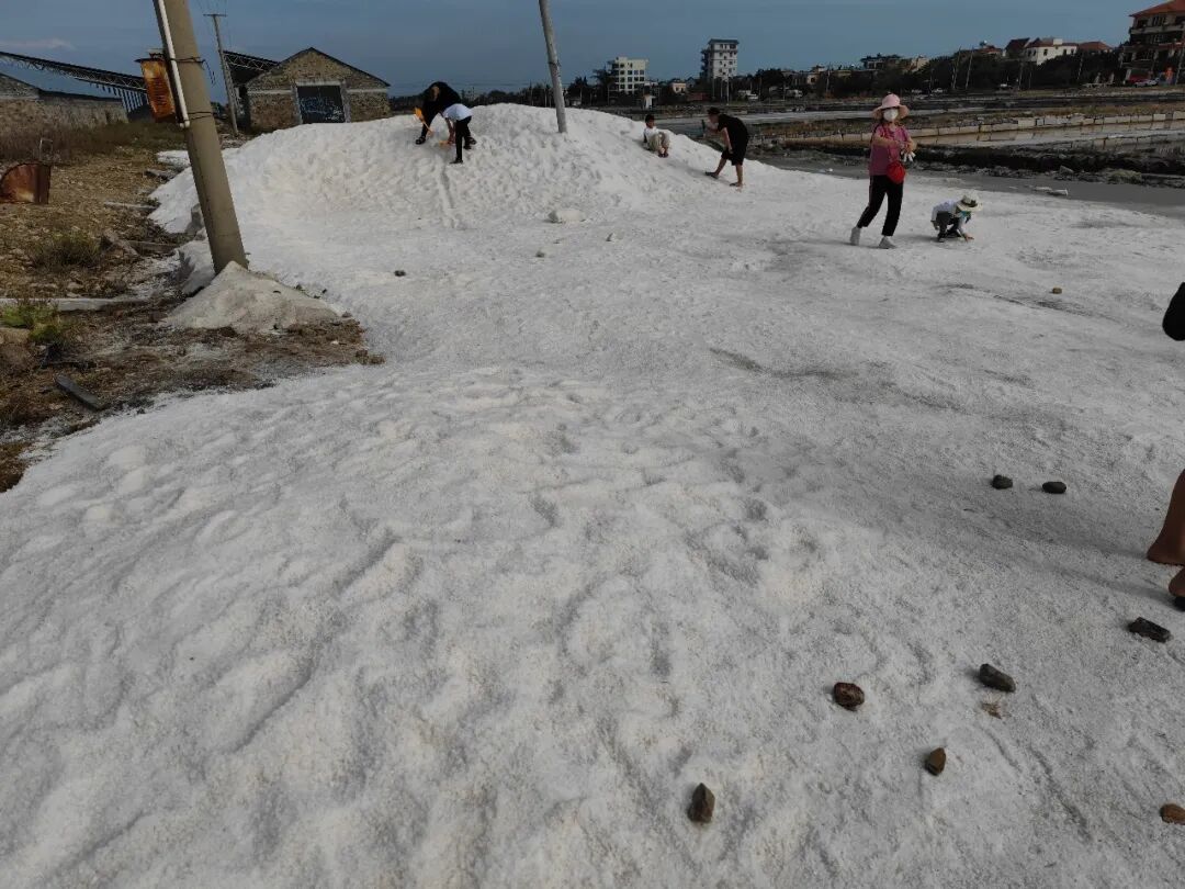 盐堆,小孩儿像玩沙子一样玩盐粒。