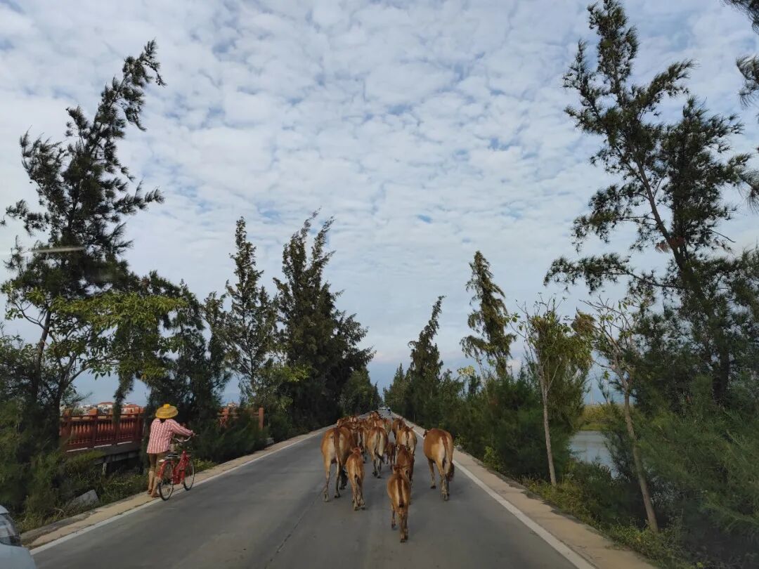 老乡就在道上放牛,经常可以遇到在道上放羊的,牛羊不会躲车,跟没见到一样,他们不会管车是不是能过得去,反正你不能撞,撞了就得赔钱。