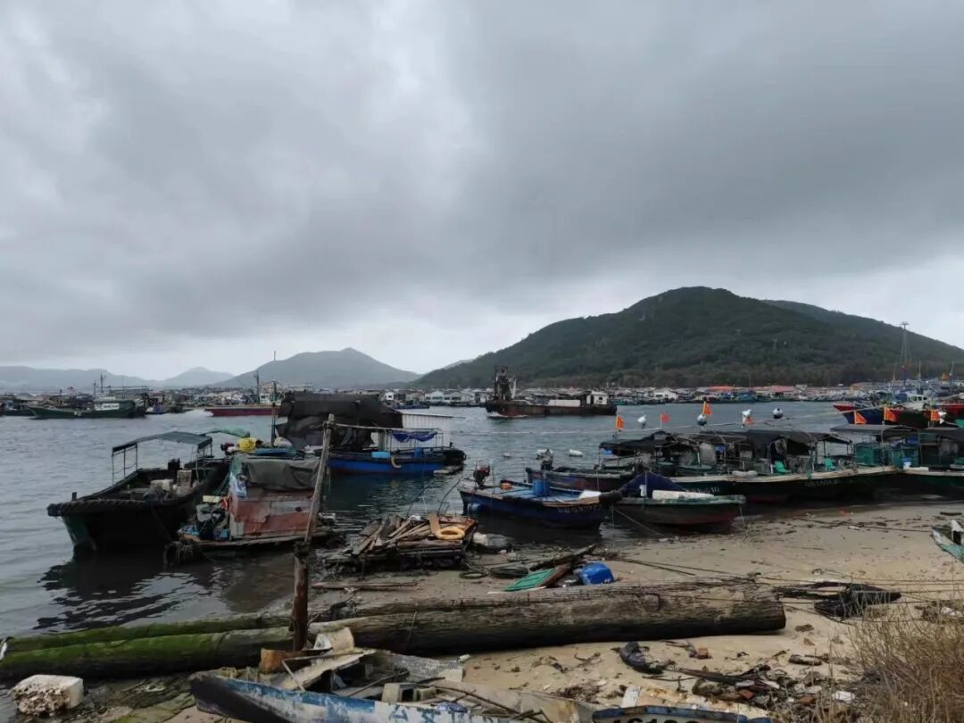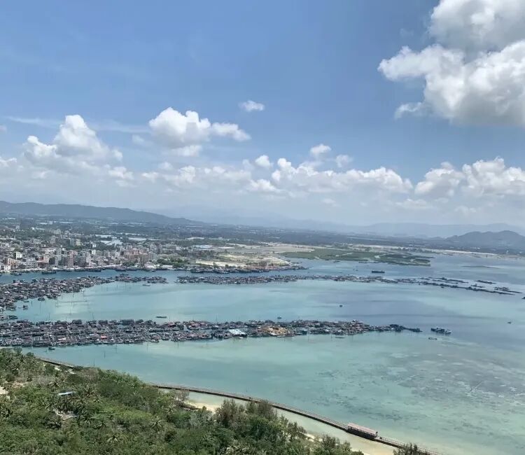 在新村岸边看远方的渔排和猴岛。