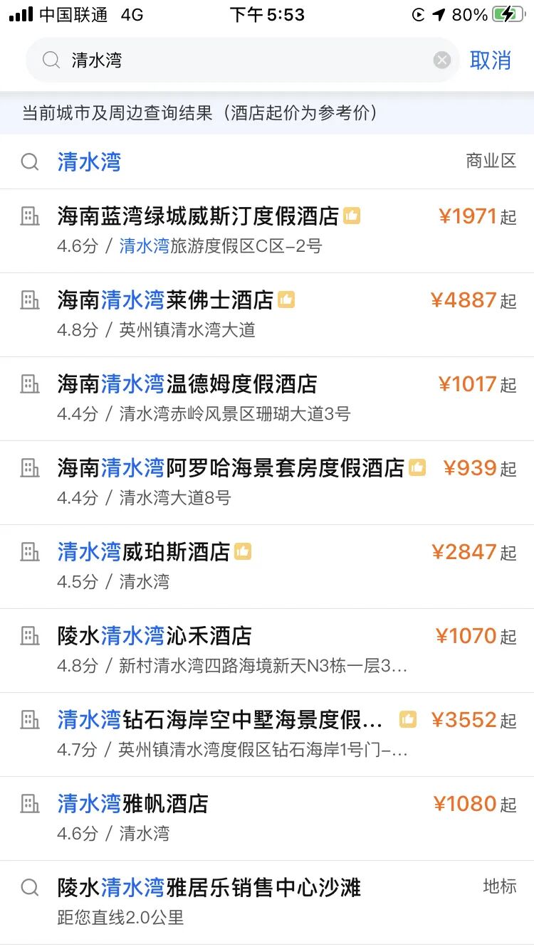 补一张清水湾的酒店价格。