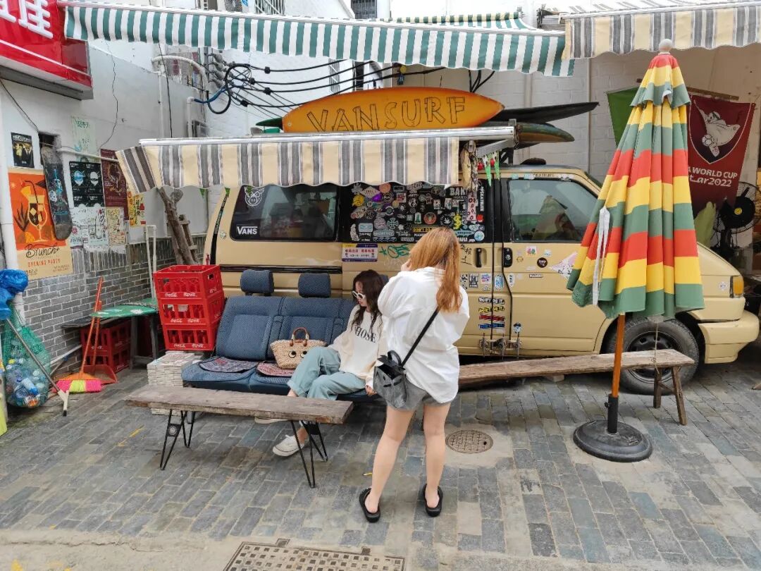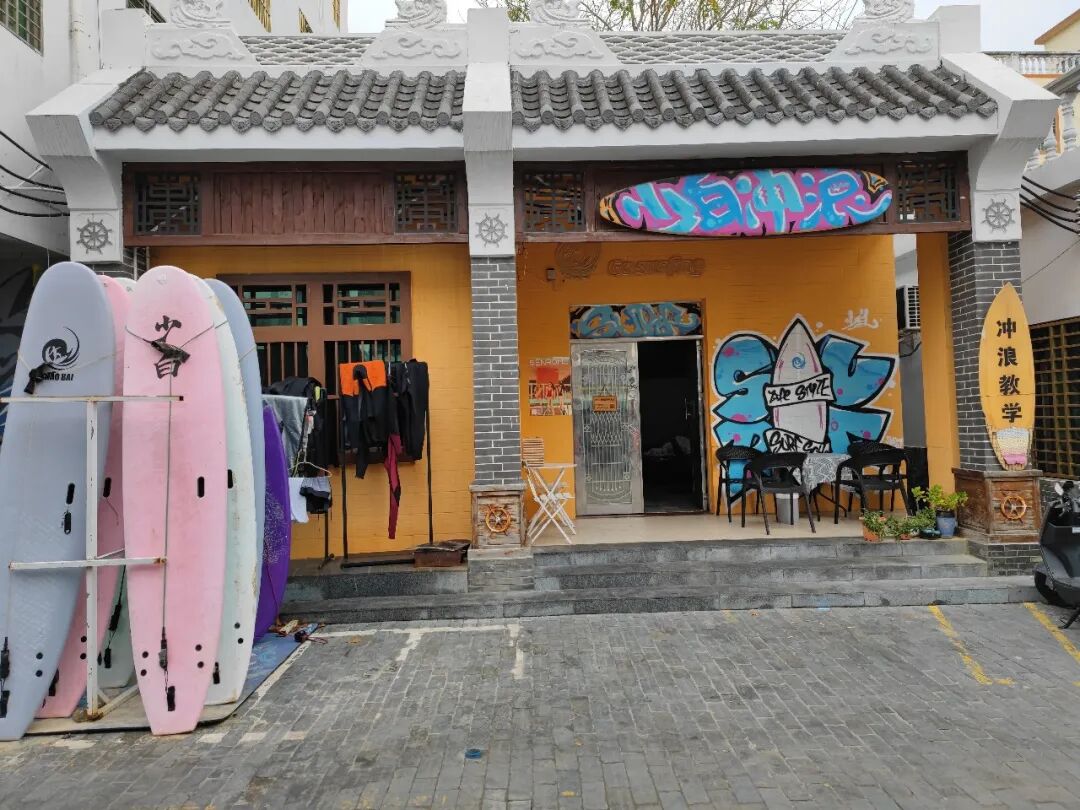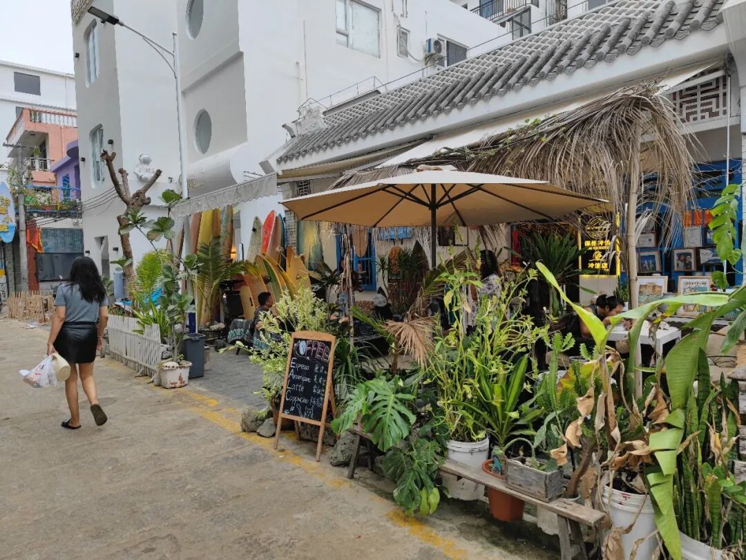 以前的后海村,就像北京曾经的画家村,也像丽江、像张家口,这里最开始就是个小渔村,知名度不高,但因为这里的浪特别适合新手,所以一些喜欢冲浪的人开始慢慢聚集在这里,长租民宿,白天练习冲浪,晚上派对舞会,这里是一群远离城市喧嚣、追寻生活的人,既逃离北上广放弃枯燥的搬砖日子,又避开三亚的热门景点,和志趣相投的人在这个小渔村里活成自己想要的样子。