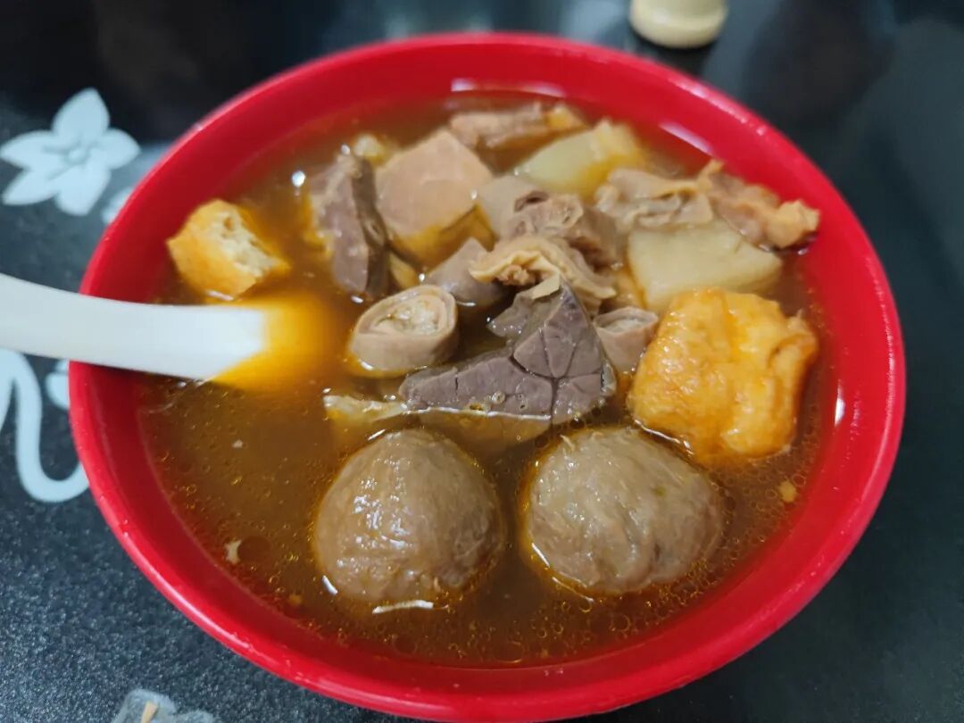 早上吃了一碗抱罗粉,里面料很多,小鱼略腥,整体味道还好。