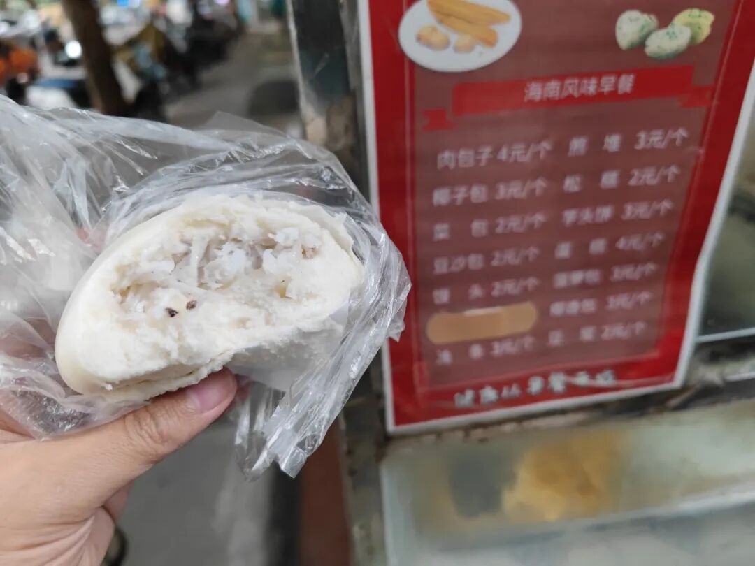 早上吃了个椰子包,里面是椰蓉馅儿的,挺好吃,微甜椰香,我喜欢椰子。