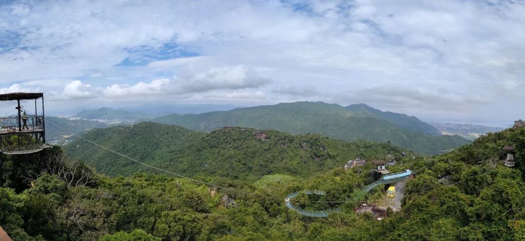 到了山顶玩娱乐项目的地方,左边是滑索。