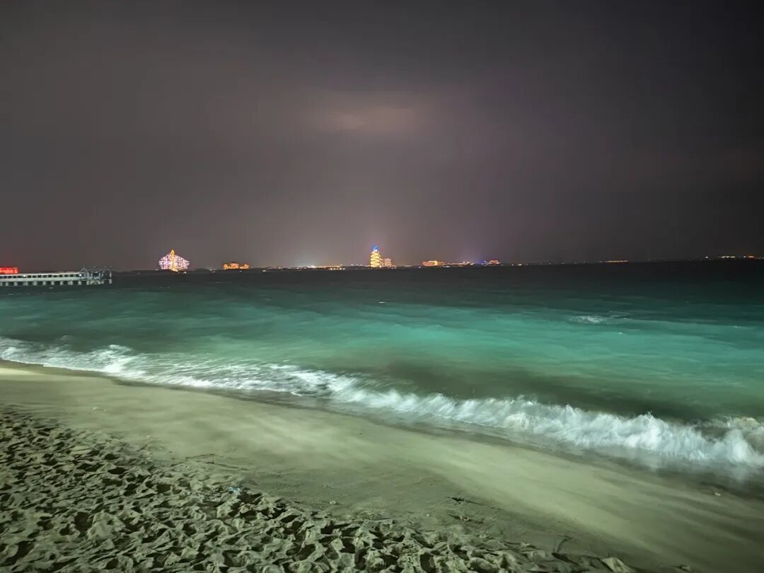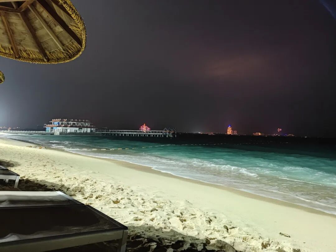 我在这个沙滩坐了好一会儿,远处是三亚的高楼霓虹,我仿佛身处世外。