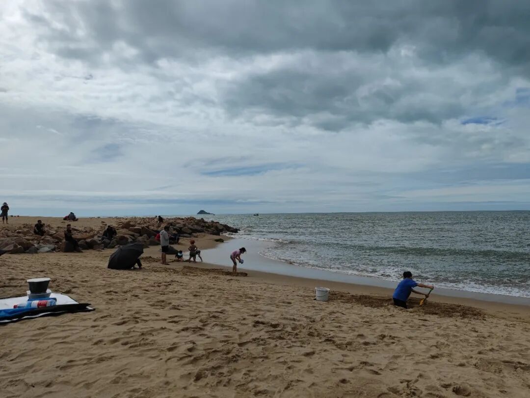 这其实是同一片沙滩,但这里明显更好。有很多小孩儿在这里尽情的玩沙子。