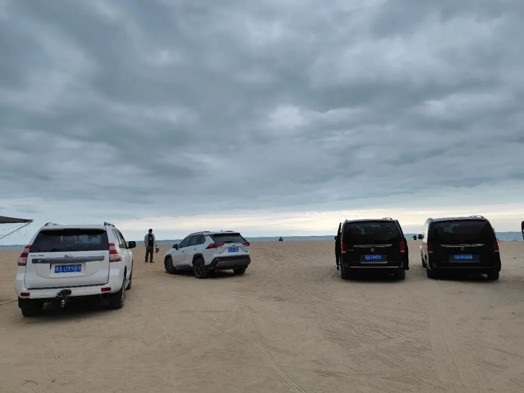 从左到右,四辆车分别来自呼和浩特(蒙A)、乌鲁木齐(新A)、哈尔滨(黑A)和长春(吉A),五湖四海来到海南。