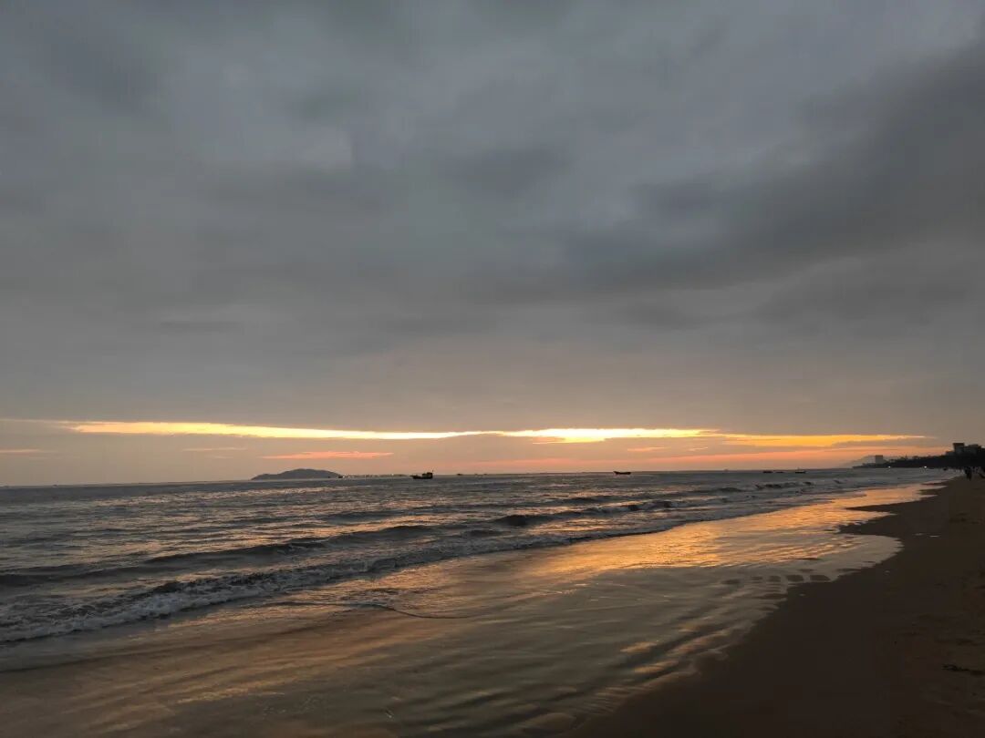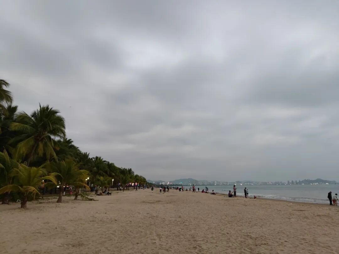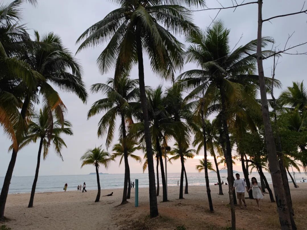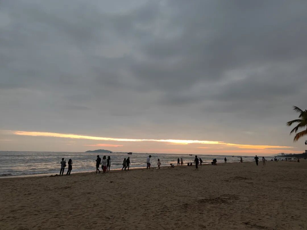我在落日时赶到了亚龙湾,细白的沙滩、椰林、落日余晖、海浪冲刷着沙滩,海边很多人,有的静坐望海,有的携侣漫步,三亚真是美。
