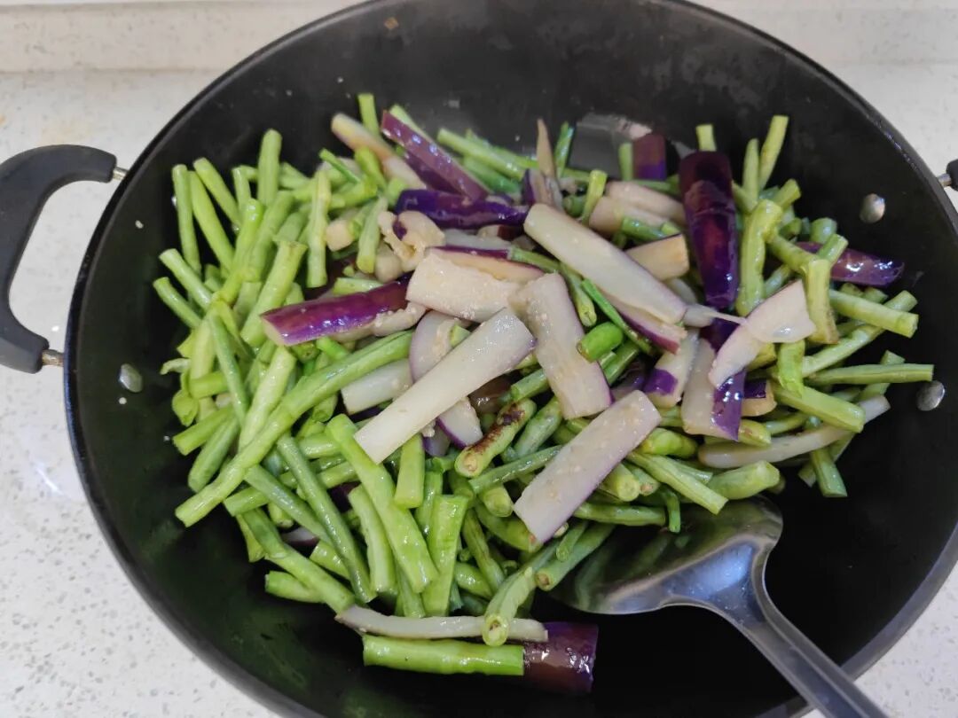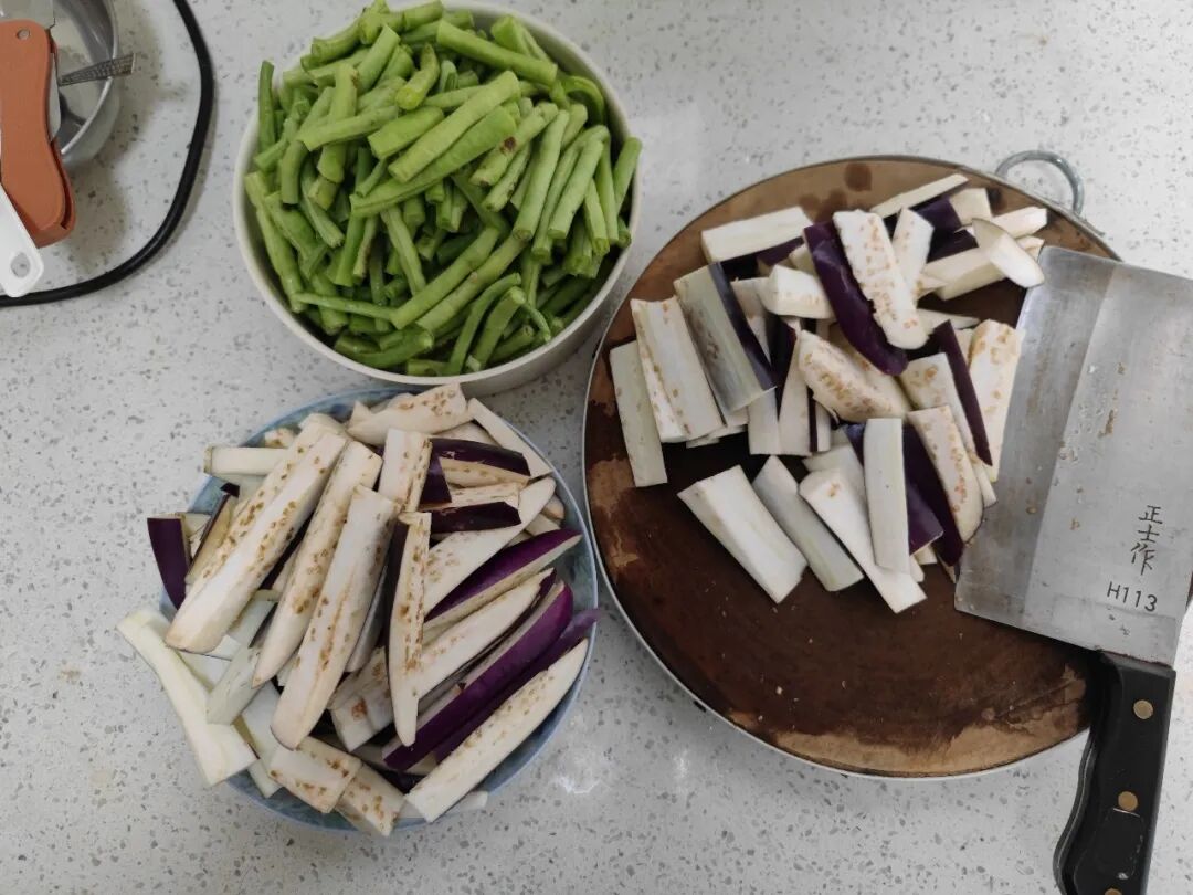 还买了豇豆和茄子,正好楼下有卖的,想做长豆角烧茄子,菜是太便宜了,豇豆一把3元,茄子四根1.7元。这点儿茄子和豇豆,我一个人吃了3顿。