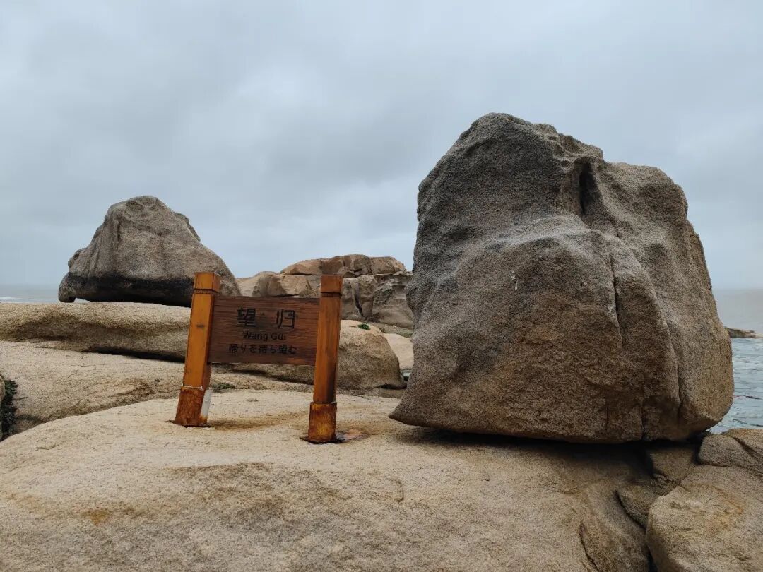 景区的主要元素都是盼望祖国早日统一,在被风侵蚀得呈蜂窝状或布满裂痕的沙石上,有同心石、望归、相框等各种景点。