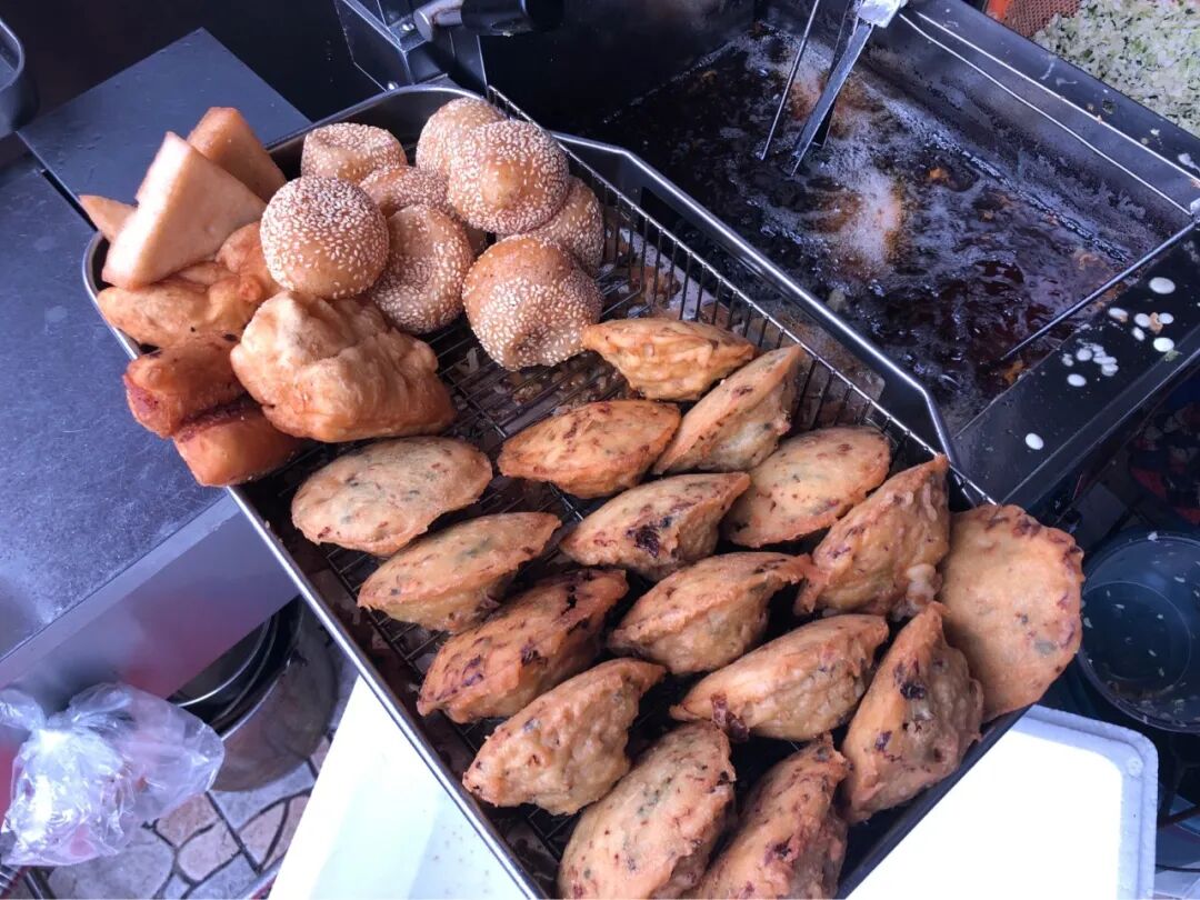 门口这个炸档,除了麻球,我一个都没见过。真的很有特色,飞碟状的海蛎饼是手舀圆白菜的馅去蘸面糊,然后扔进油锅炸;三角状的芋块;马耳就是炸面糊很甜很好吃。我另外还要了肉包和菜包,非常好吃。这一顿早饭够我扛到晚上了。