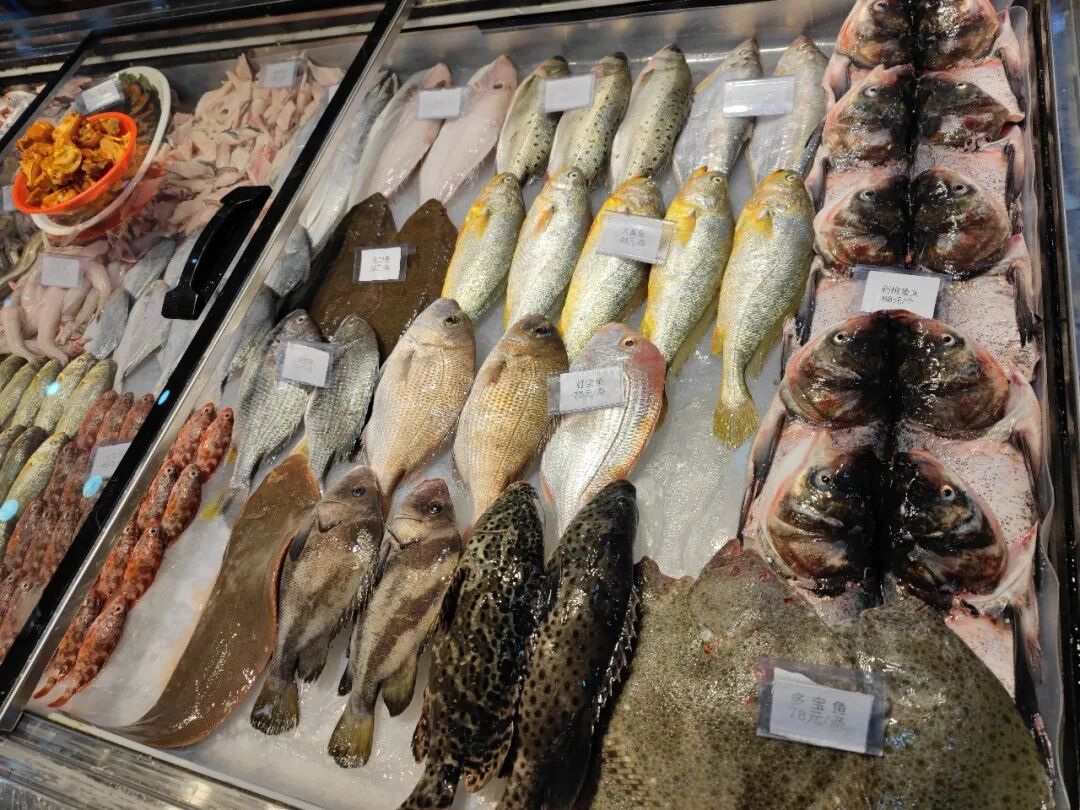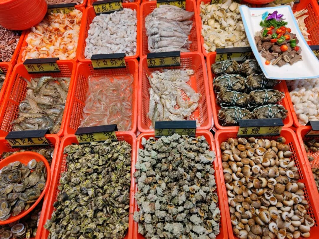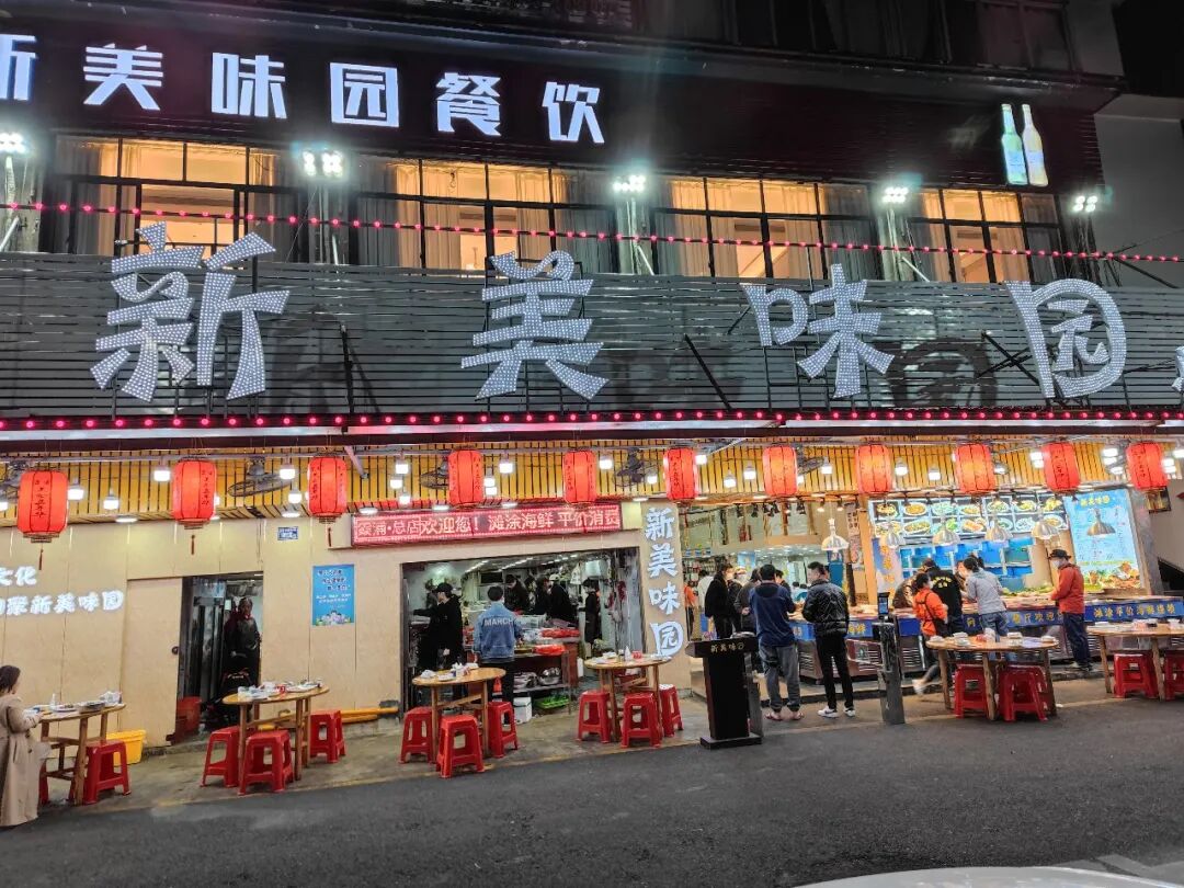 晚上回到县城吃饭,这里是餐厅密集的饮食街,一排三家海鲜大排档很有气势。