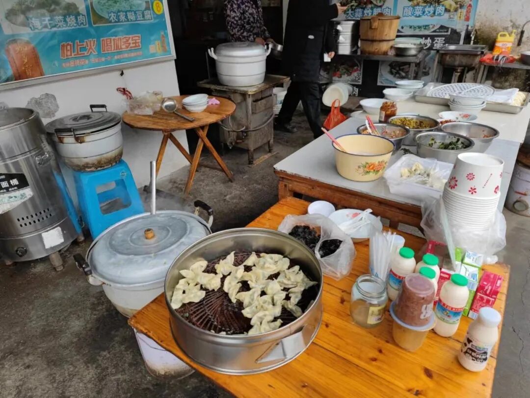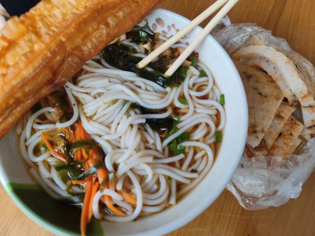 走到小镇的小吃街去吃早饭,汽糕和米粉。