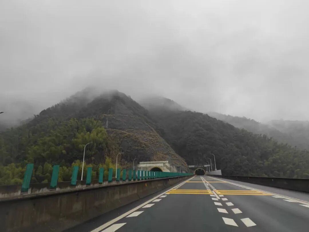 路上的山,都是云雾缭绕。江湾到武夷山很近。