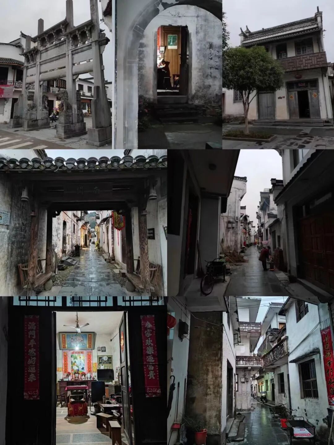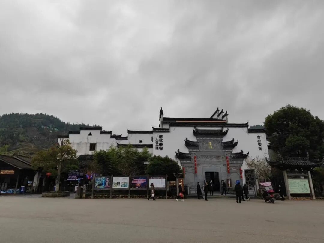 不时有徽派村落坐落在山脚,或者我们从两旁的高高白墙青瓦中穿过。山脚还不时冒出一片片高耸的竹林,而村落的房前也堆着长长的碗口粗笔直的翠竹。